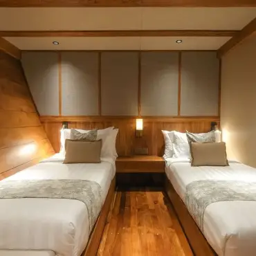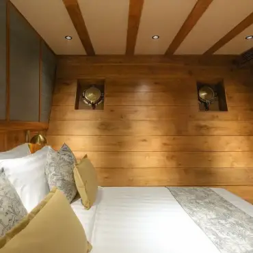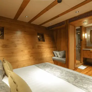 Stylish and cozy, each Deluxe Stateroom is designed with comfort in mind. Featuring modern amenities and thoughtful finishes, these cabins are perfect for winding down in luxury.