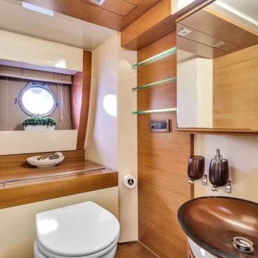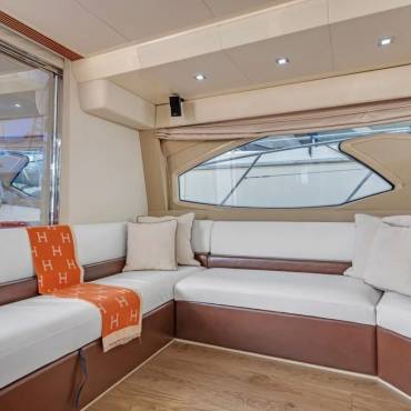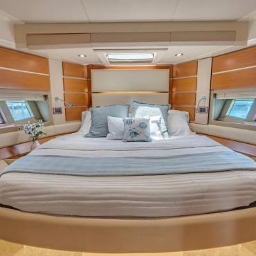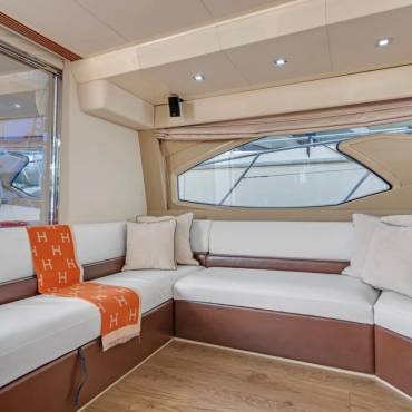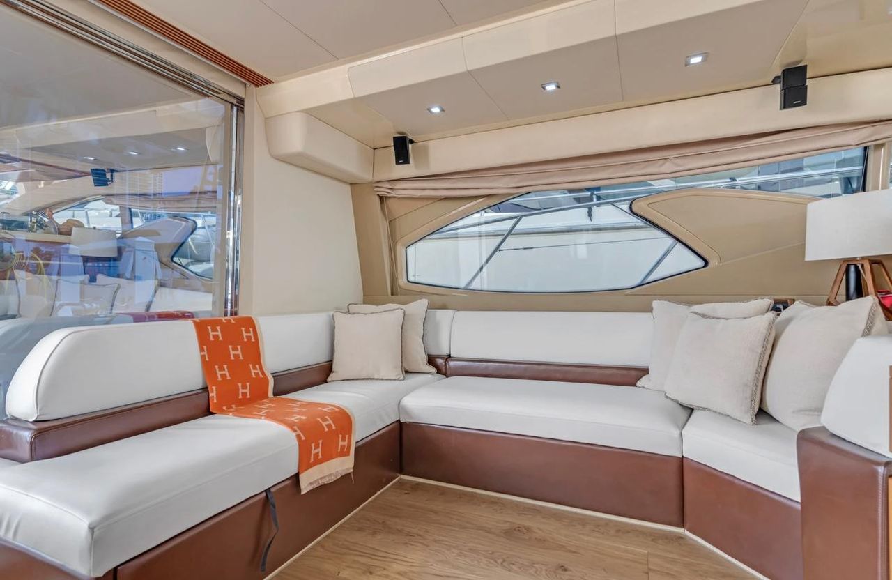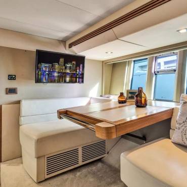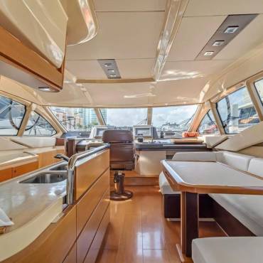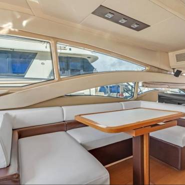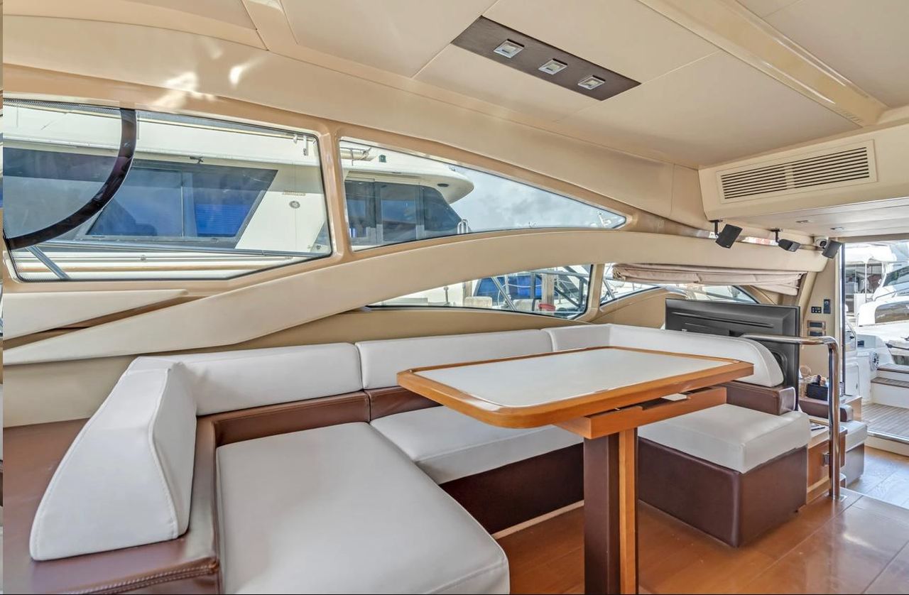 Inside, Freedom showcases a contemporary Italian interior with high-end finishes. The main salon is bright and airy, with large windows filling the space with natural light. Comfortable seating, a state-of-the-art entertainment system, and an open-plan layout connecting the salon, dining area, and fully equipped galley ensure every moment onboard is enjoyable.