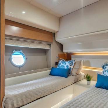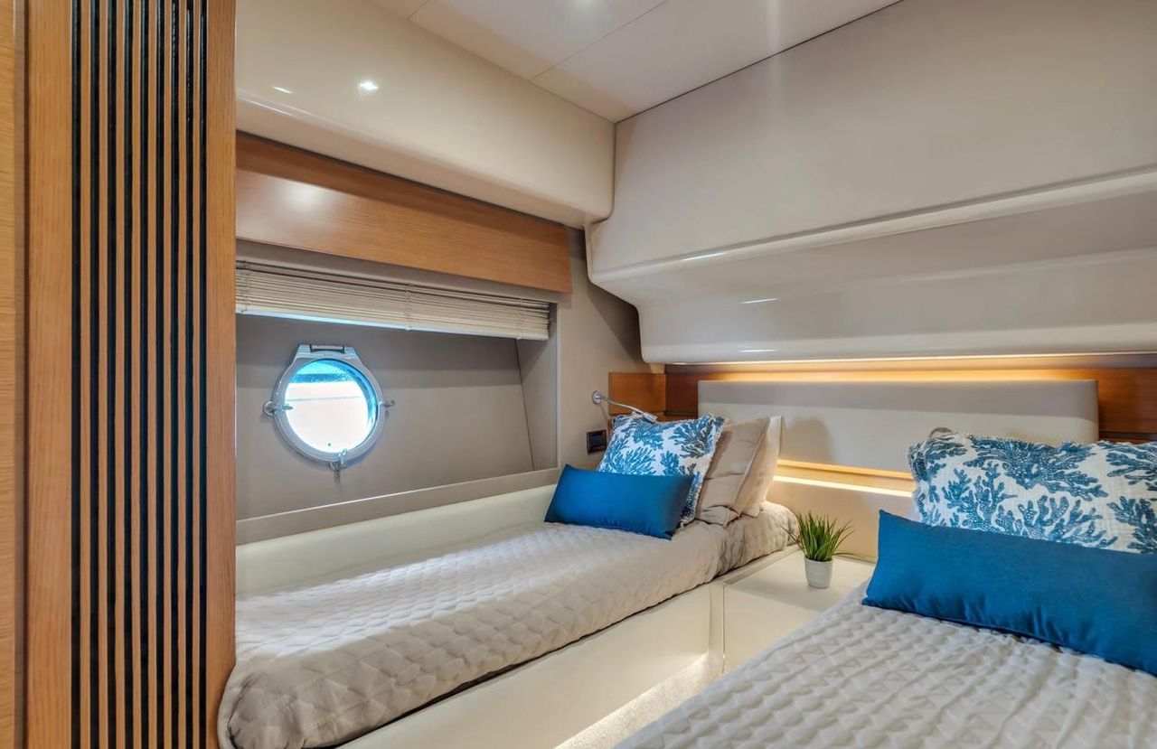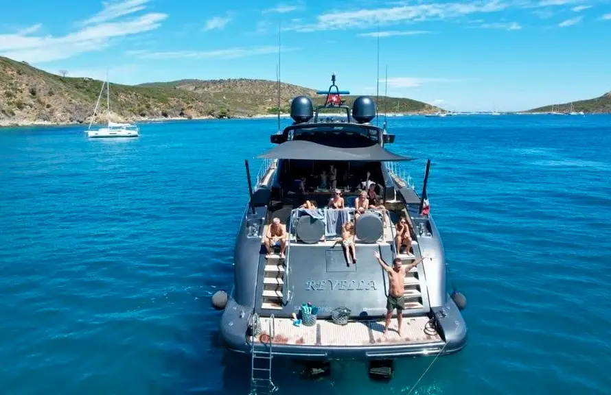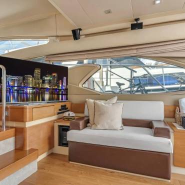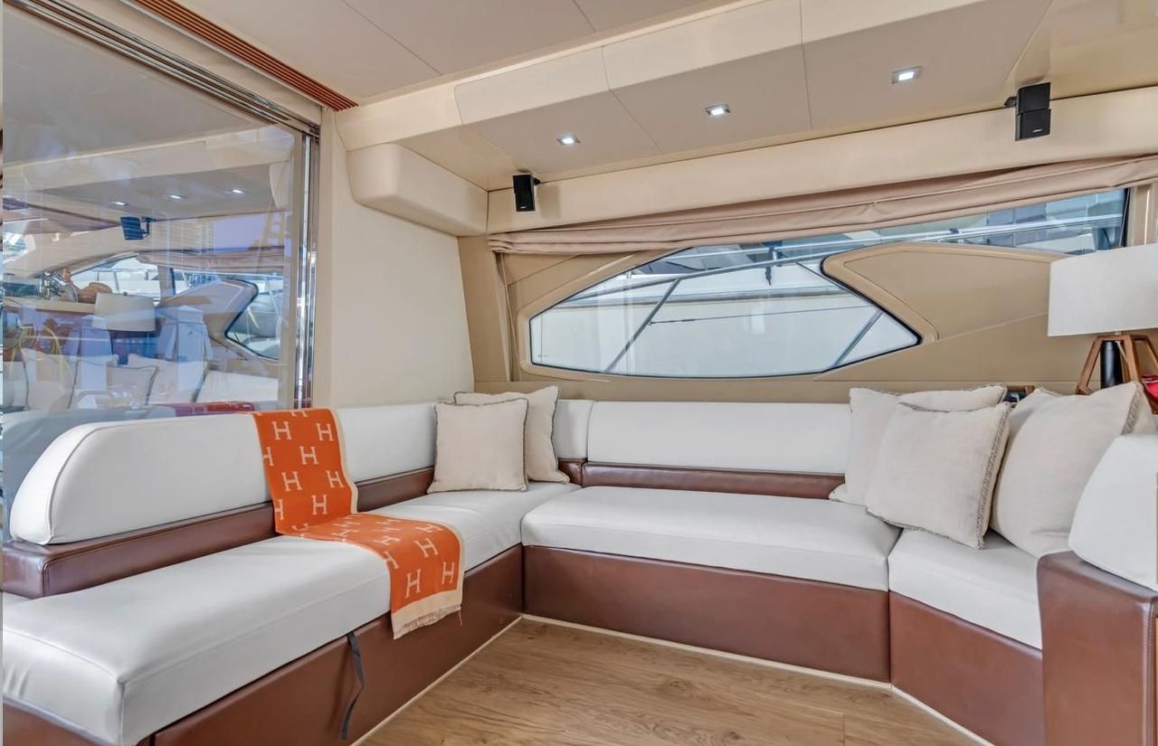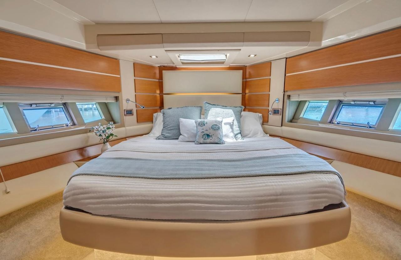 Inside, Freedom showcases a contemporary Italian interior with high-end finishes. The main salon is bright and airy, with large windows filling the space with natural light. Comfortable seating, a state-of-the-art entertainment system, and an open-plan layout connecting the salon, dining area, and fully equipped galley ensure every moment onboard is enjoyable.