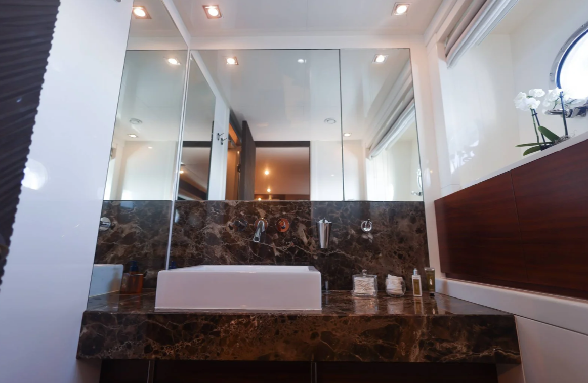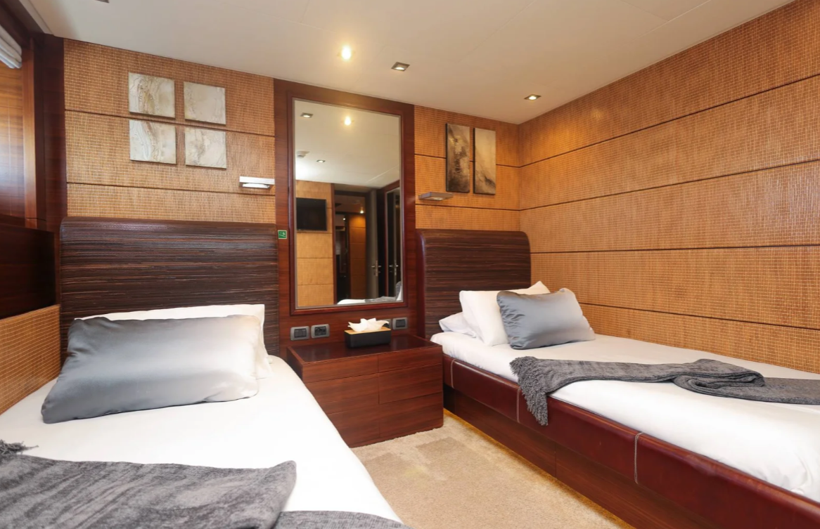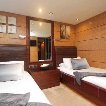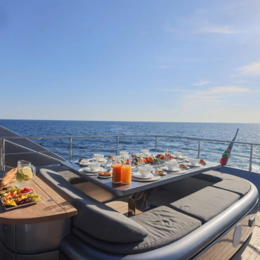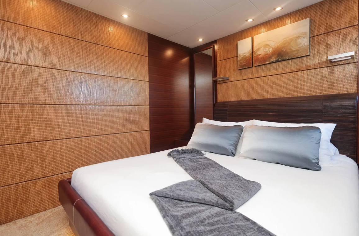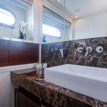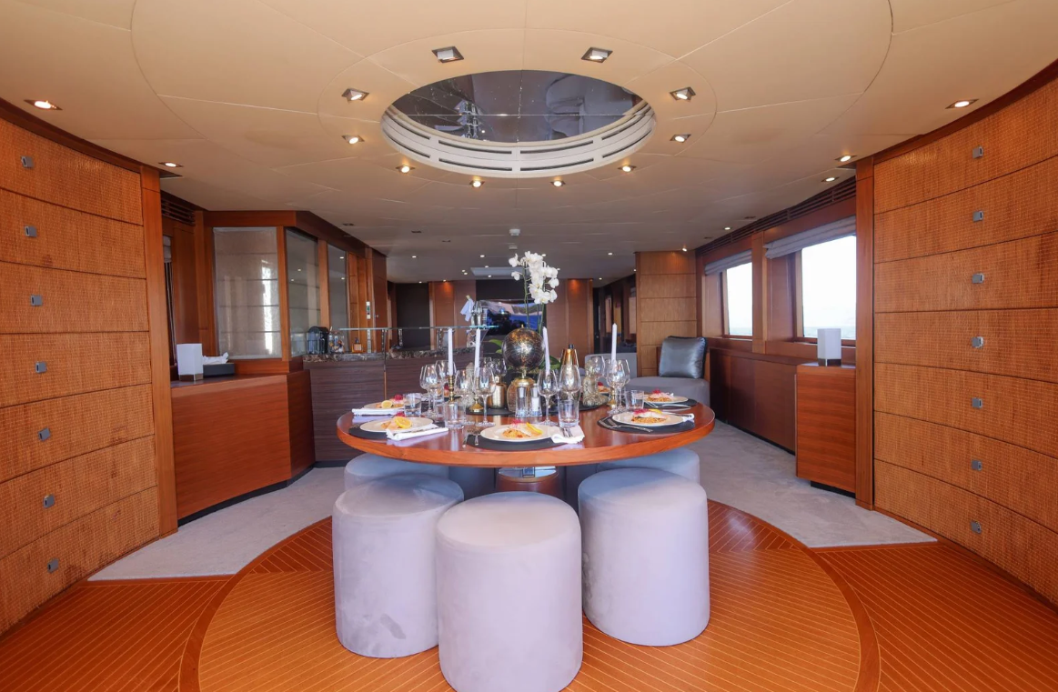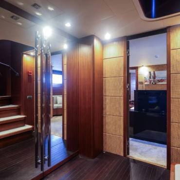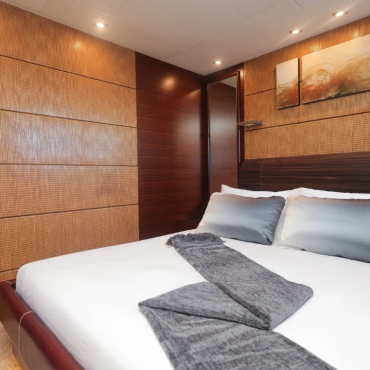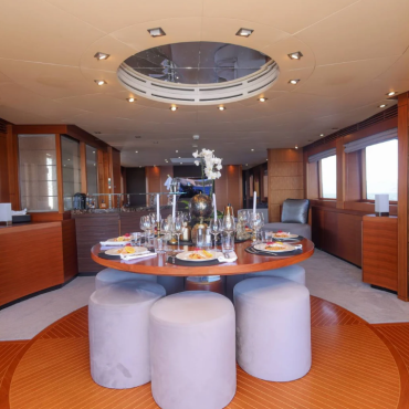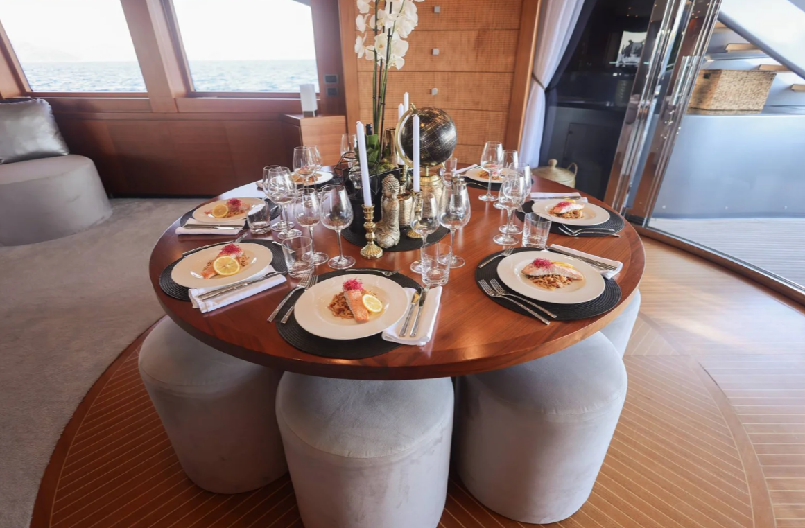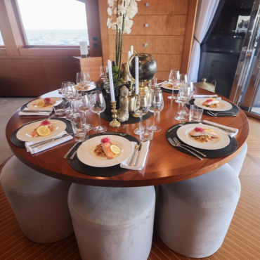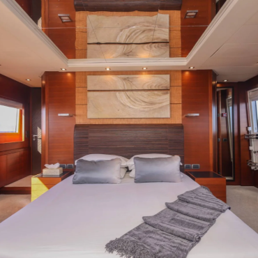 Accommodating up to 8 guests in 4 spacious cabins, the yacht also supports a crew of 6 dedicated professionals, ensuring your every need is met for an unforgettable stay on board. Additionally, when docked, MATSU can host up to 70 guests, making it ideal for exclusive events such as film festivals, corporate gatherings, and private celebrations.