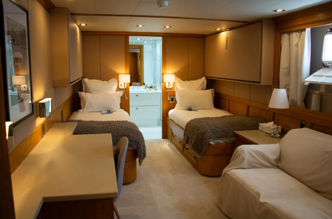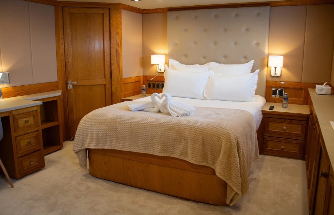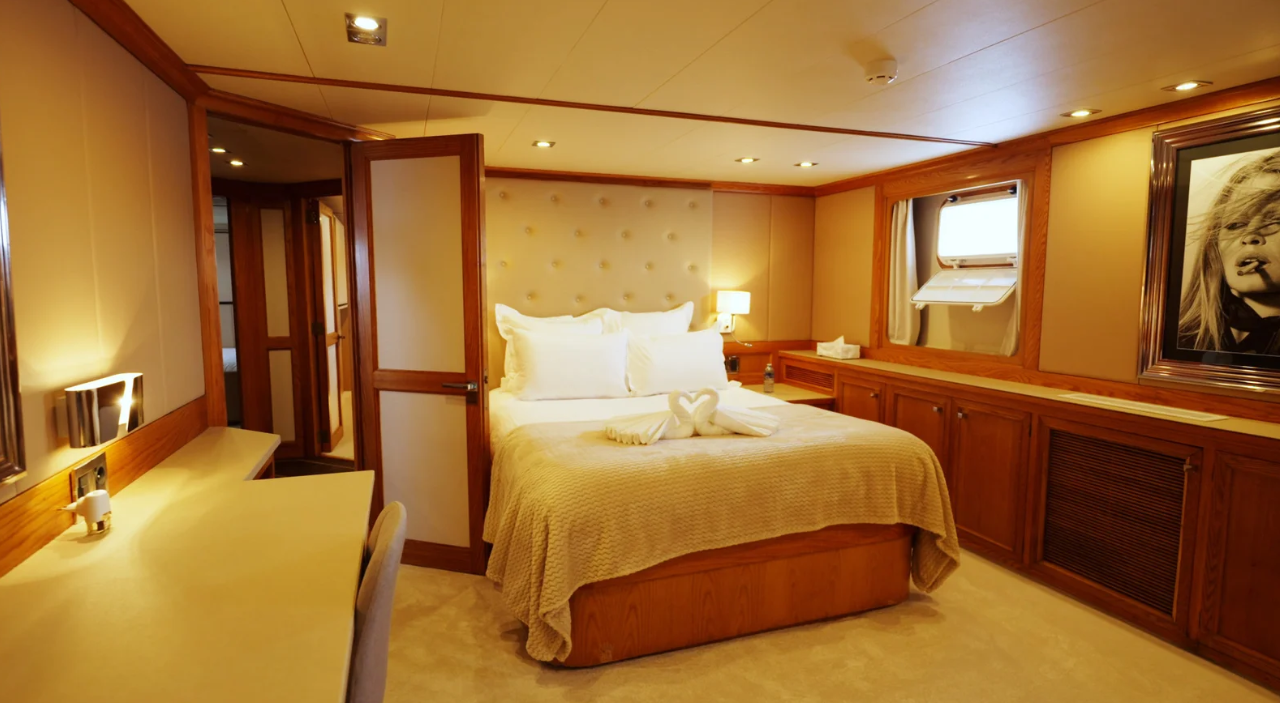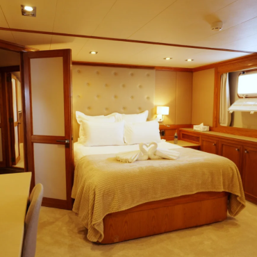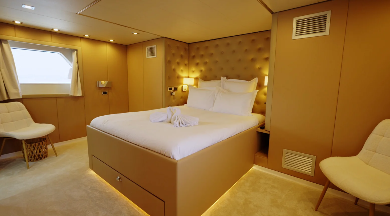 Aboard this elegant vessel, comfort and sophistication are paramount. A dedicated crew of 5, including a personal chef, provides impeccable service and world-class hospitality throughout the journey.