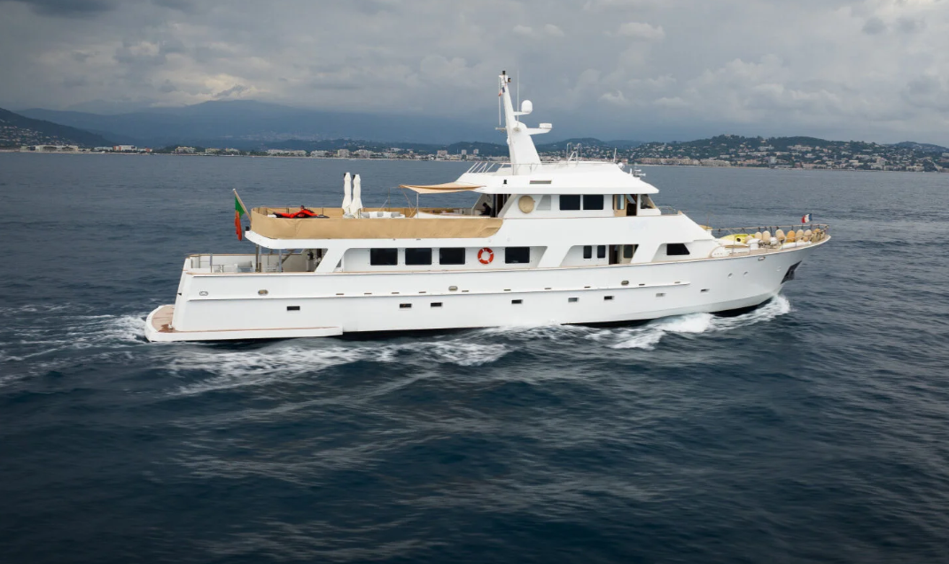 This stunning motor yacht, built in 1993, stretches 35 meters in length and features an impressive beam of 7.21 meters. Powered by twin 1100 HP engines, she offers a comfortable cruising speed of 10 knots and a maximum speed of 15 knots. Stabilizers ensure smooth navigation for an enjoyable experience on board.