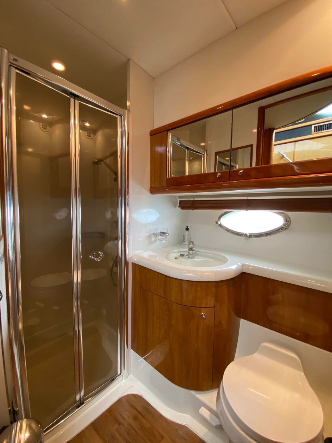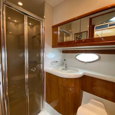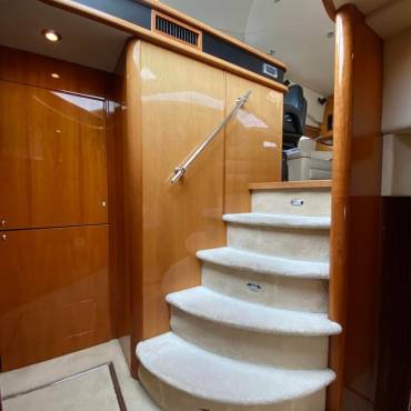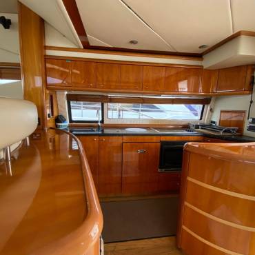 With new upholstery, a new sun awning in the aft cockpit, new exterior cushions, a new wooden interior floor, and a newly refitted kitchen unit, PECAR looks fresh, modern, and elegant. The yacht features 3 cabins with ensuite bathrooms, a spacious layout with the galley adjacent to the exterior cockpit, and a large flybridge.