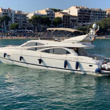 This 64-foot luxury motor yacht, named PECAR, is without a doubt one of the most attractive in her category. She is the perfect choice whether you’re looking for a relaxing day on the water or an unforgettable boating experience in the north of Mallorca.