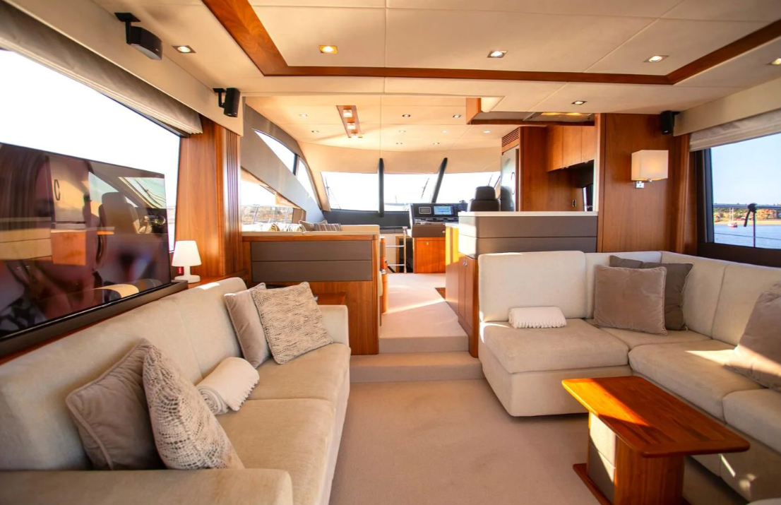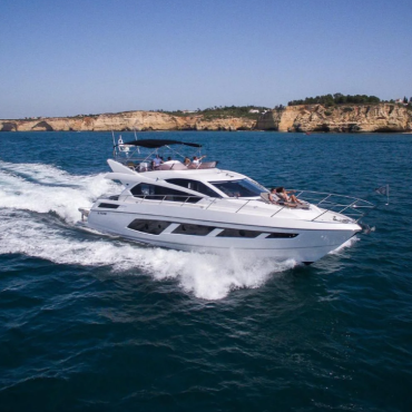 This 65-foot yacht is one of the finest in its class, offering elegant design and exceptional comfort. It accommodates up to 8 guests across 4 well-appointed cabins, making it ideal for a day cruise or a week-long getaway at sea. Highlights include a spacious bow lounge, an expansive flybridge, and a generous swim platform just steps from the cockpit.