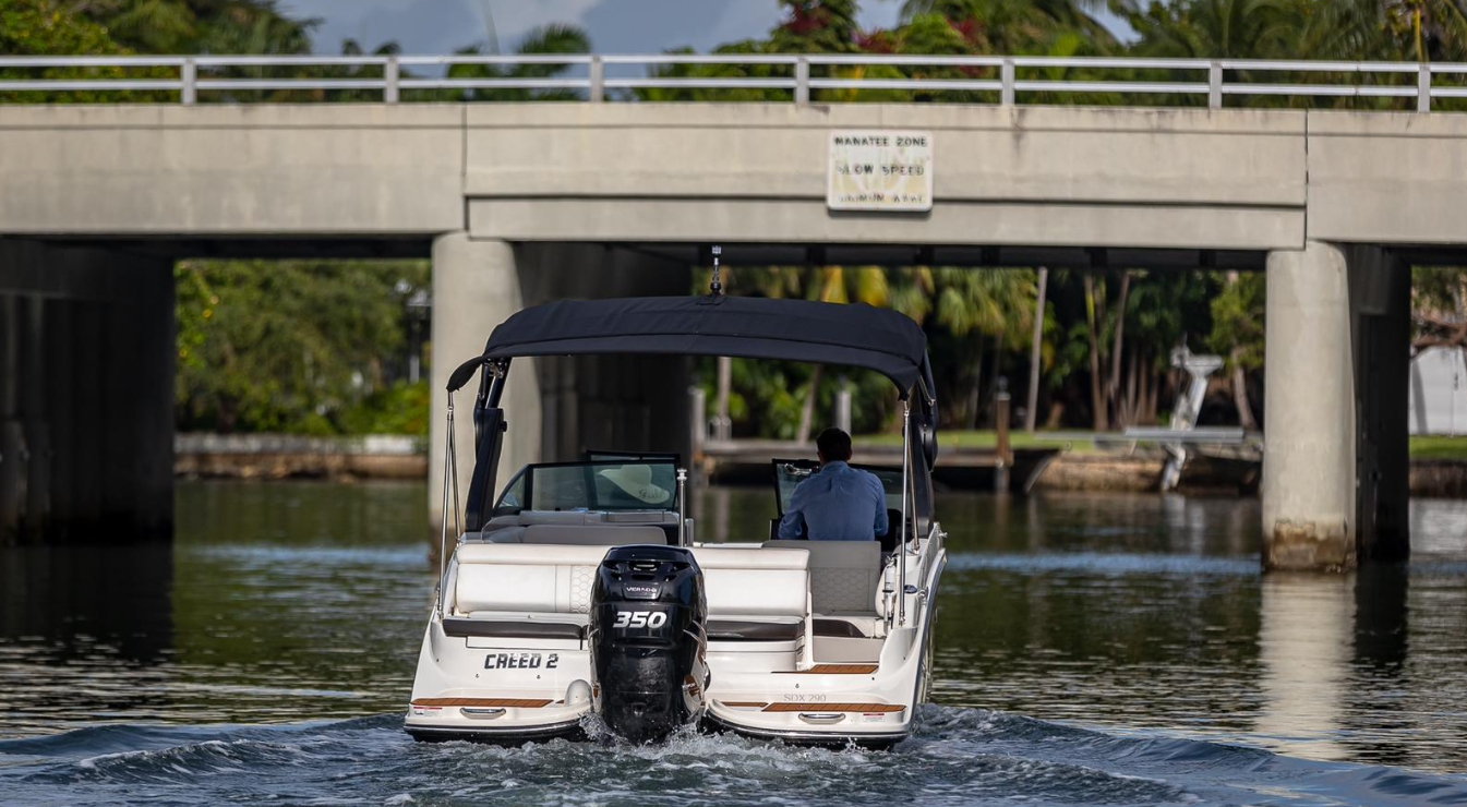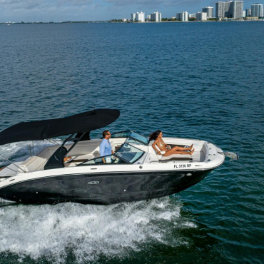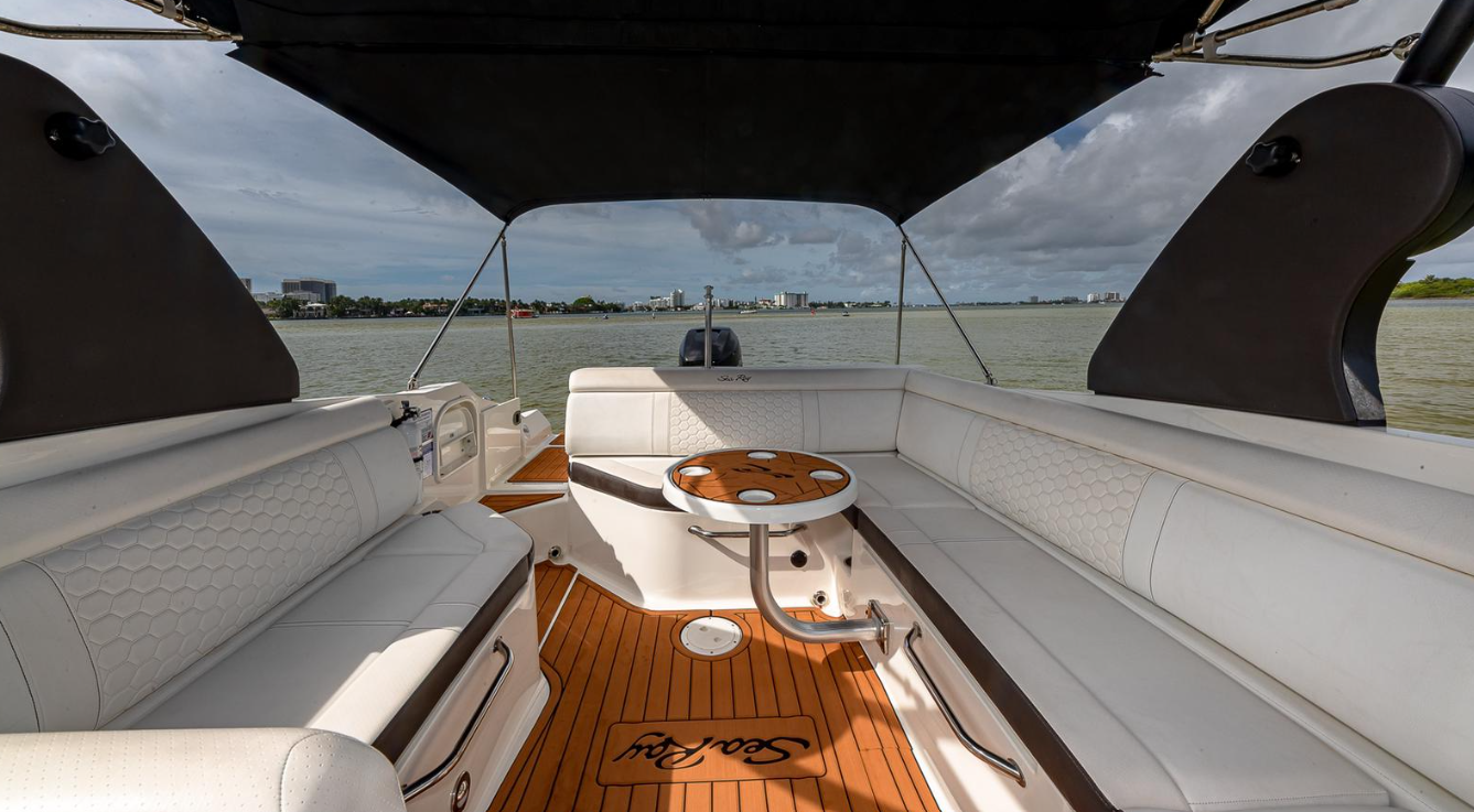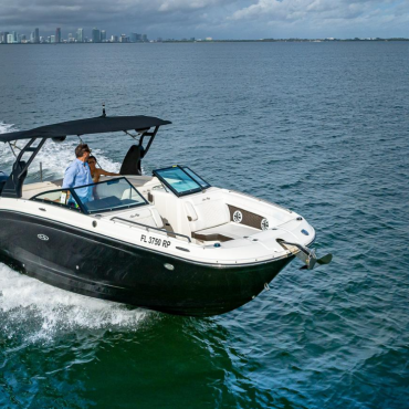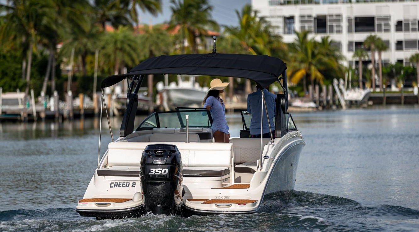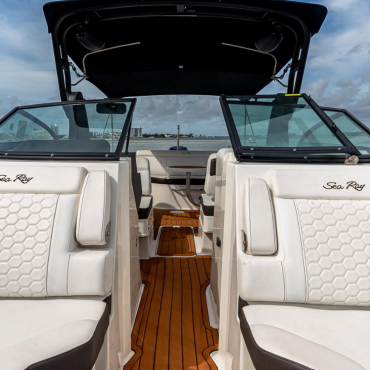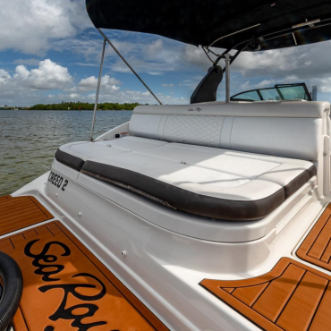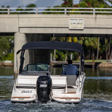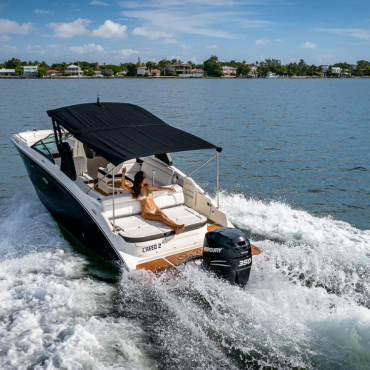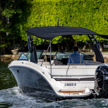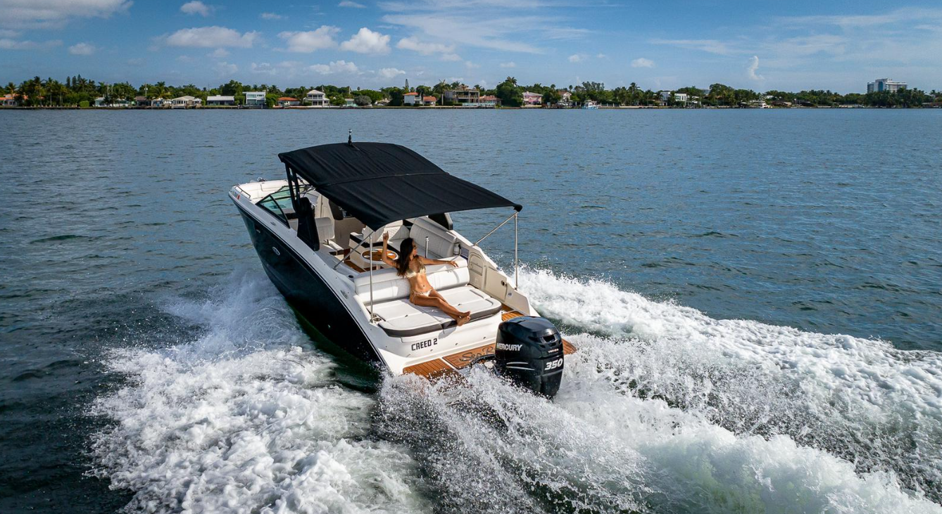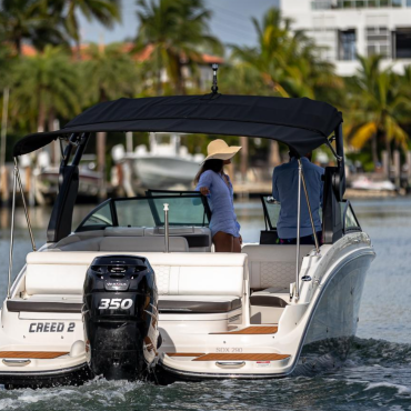The Sea Ray Creed 2 is a sleek and sporty 29-foot cruiser that’s perfect for intimate escapes, sandbar adventures, or sightseeing along the coast. Designed with comfort and versatility in mind, it’s the ideal choice for smaller groups looking for a fun and smooth ride on the water.