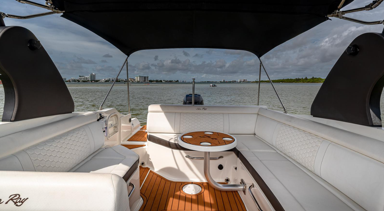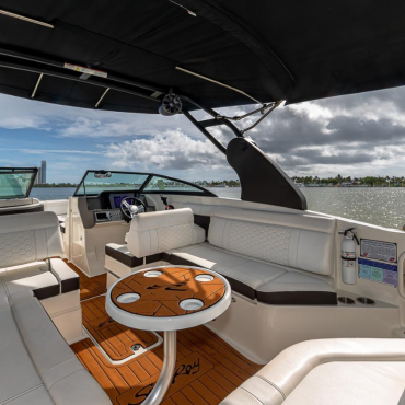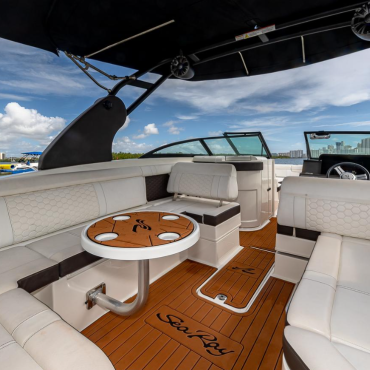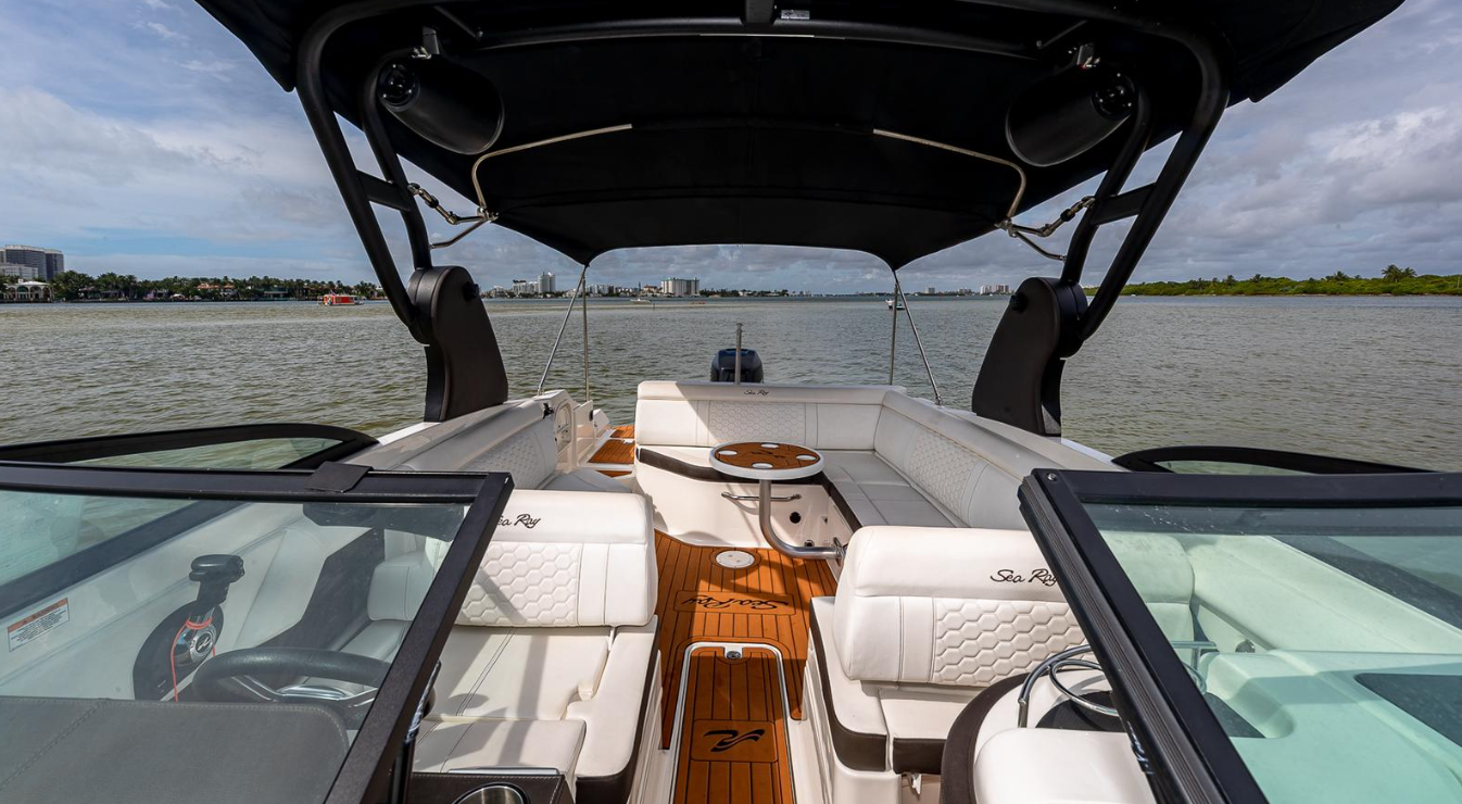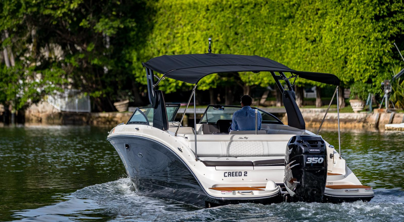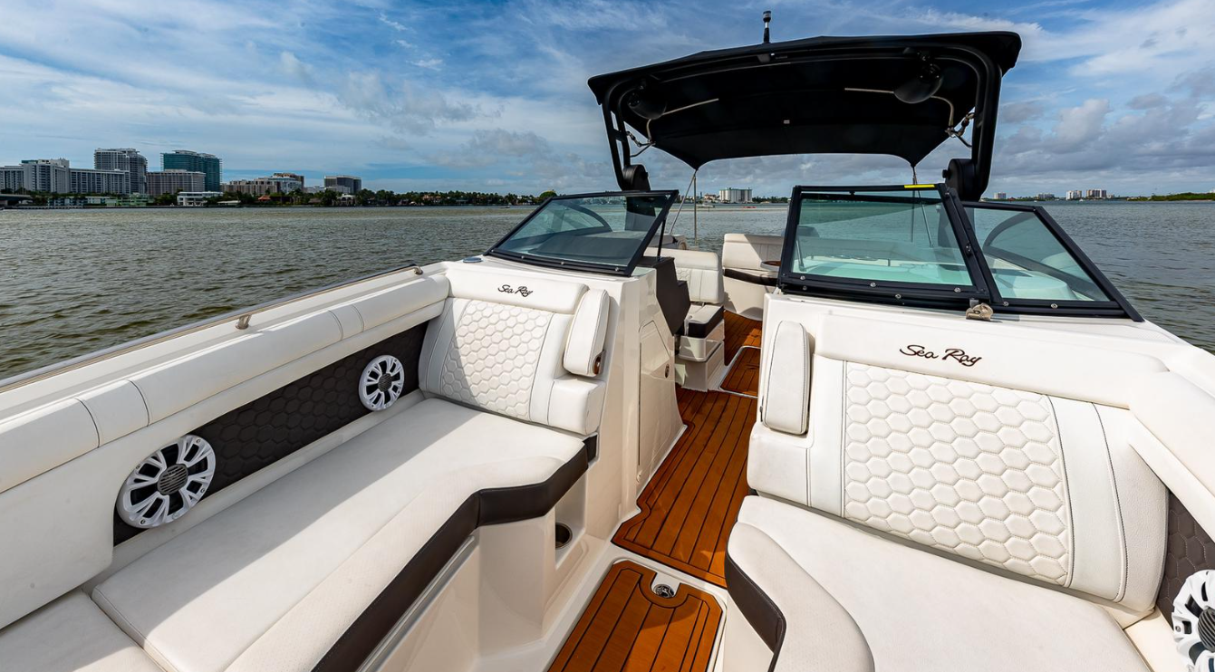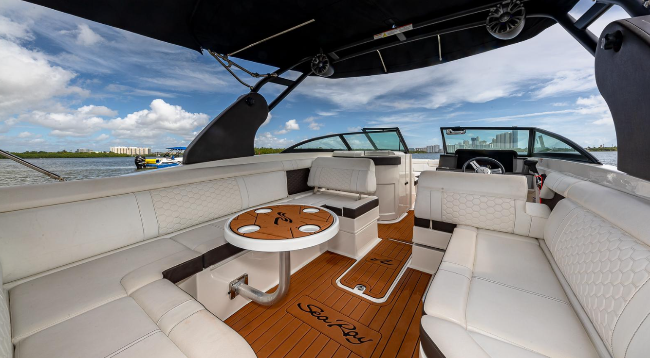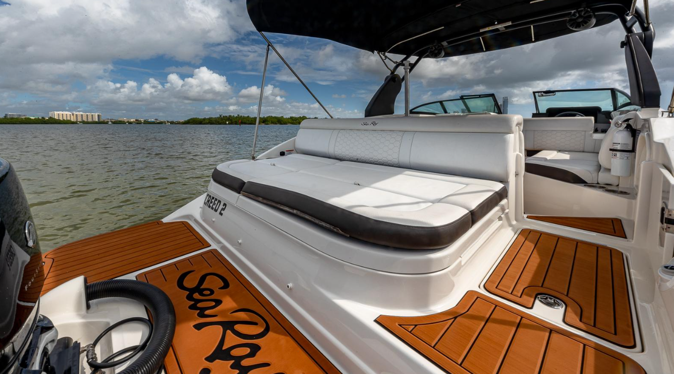 The Sea Ray Creed 2 is a sleek and sporty 29-foot cruiser that’s perfect for intimate escapes, sandbar adventures, or sightseeing along the coast. Designed with comfort and versatility in mind, it’s the ideal choice for smaller groups looking for a fun and smooth ride on the water.