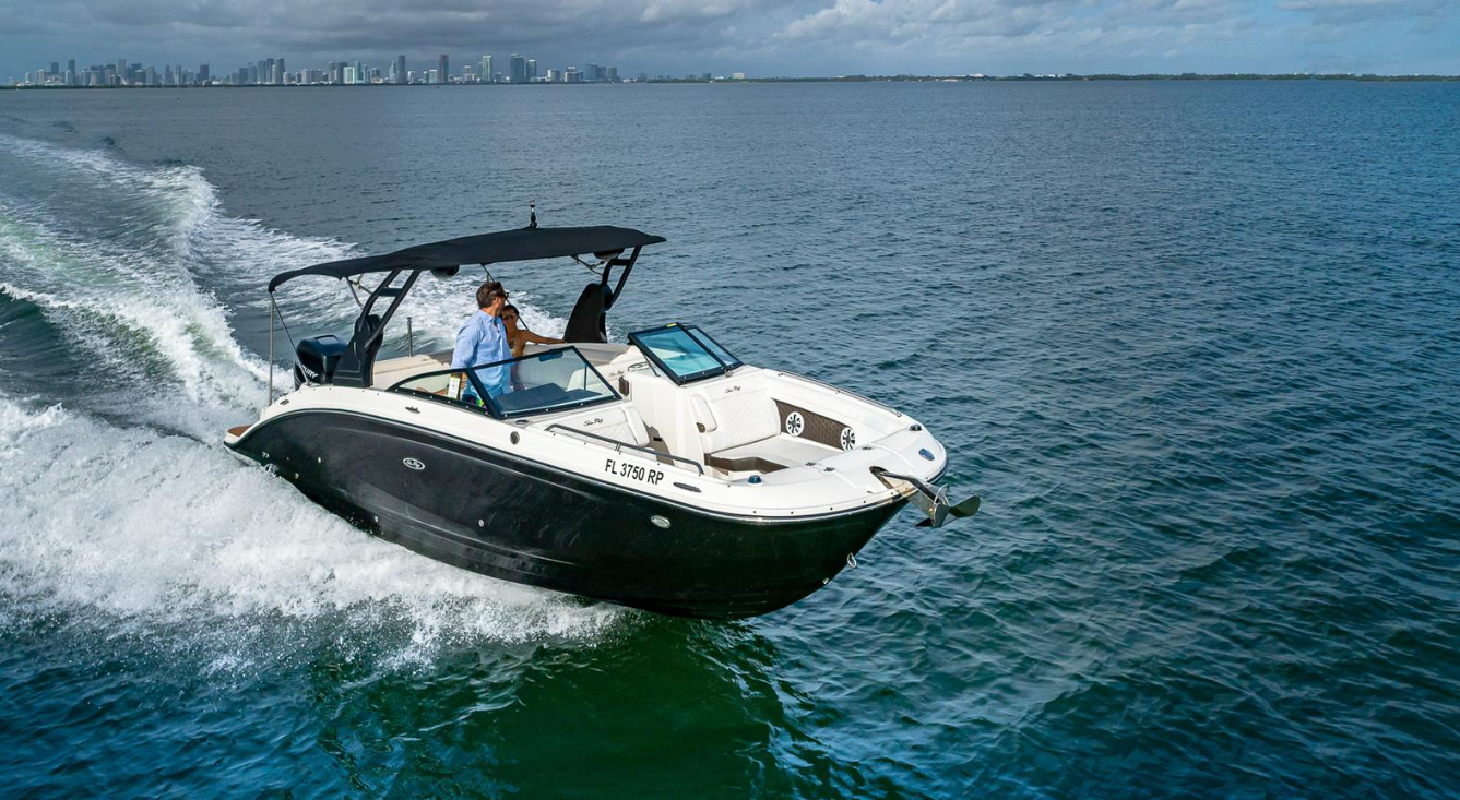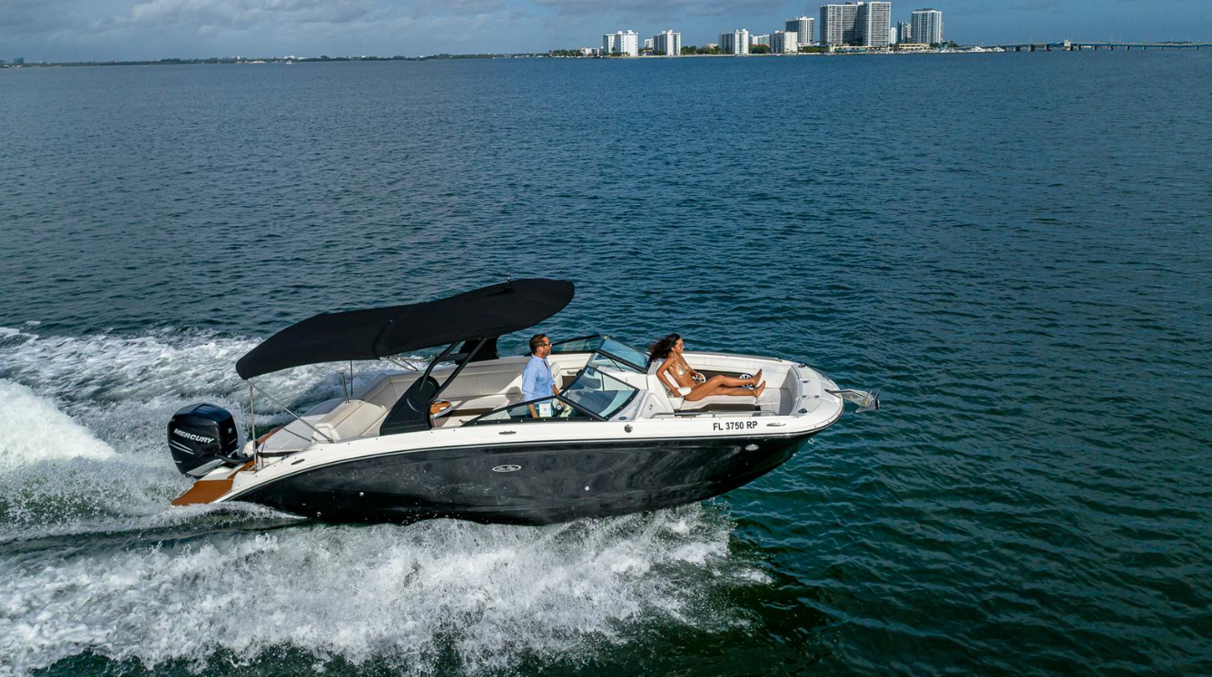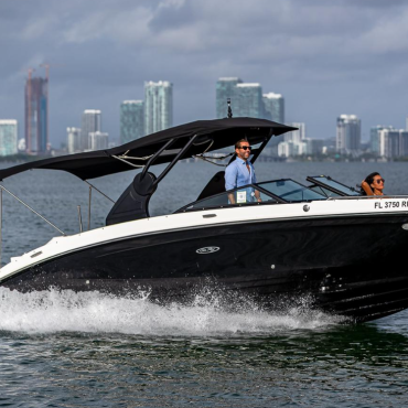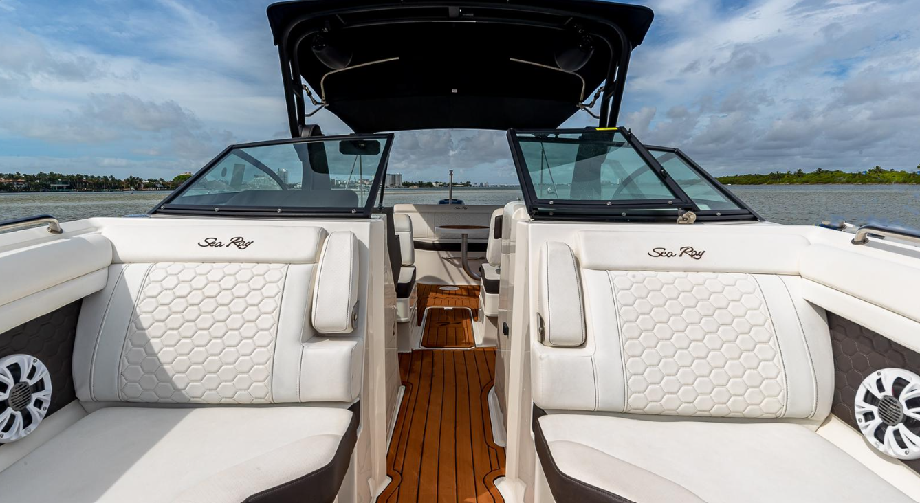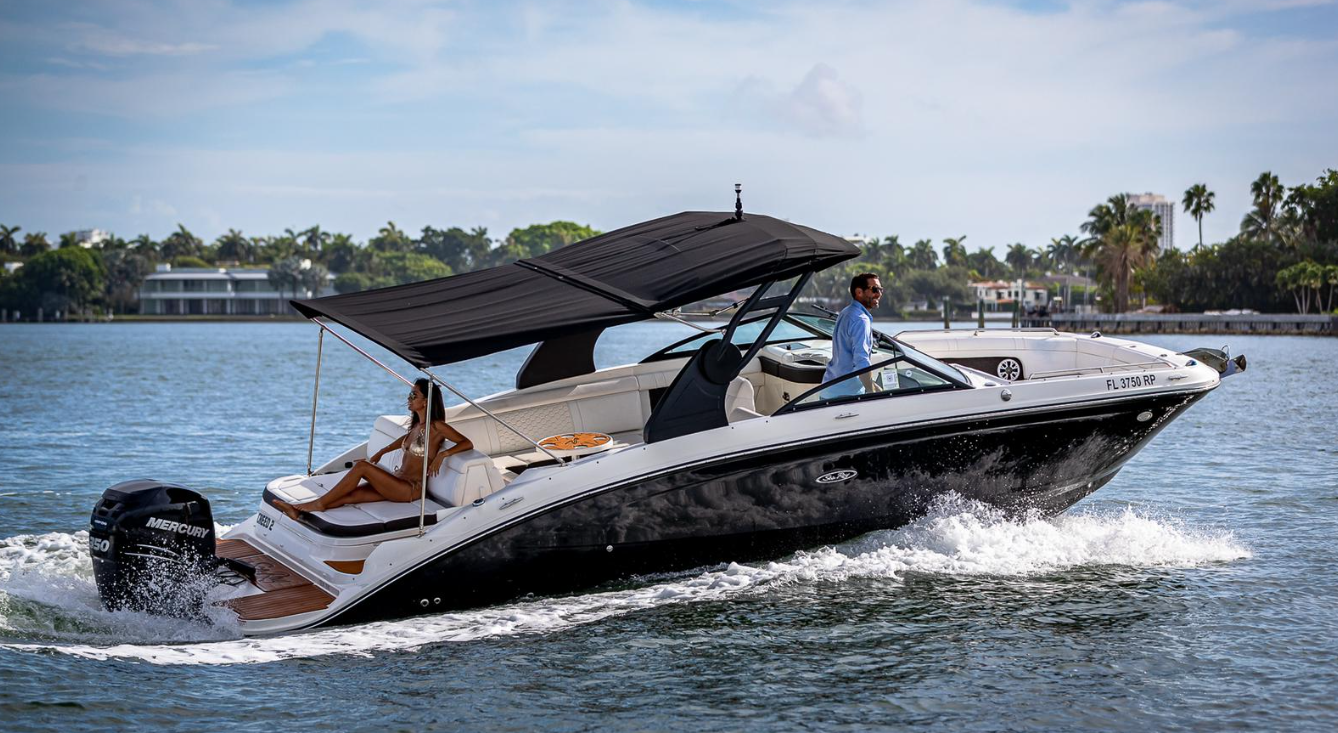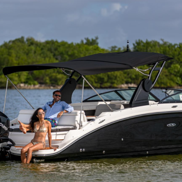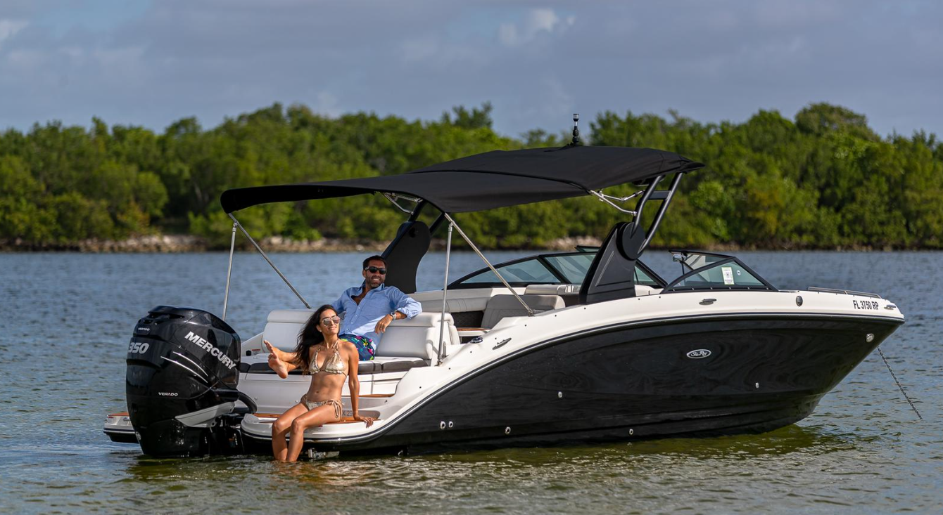The Sea Ray Creed 2 is a sleek and sporty 29-foot cruiser that’s perfect for intimate escapes, sandbar adventures, or sightseeing along the coast. Designed with comfort and versatility in mind, it’s the ideal choice for smaller groups looking for a fun and smooth ride on the water.