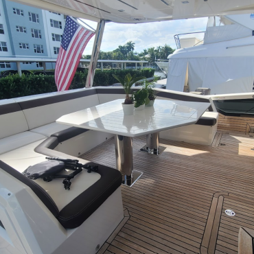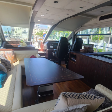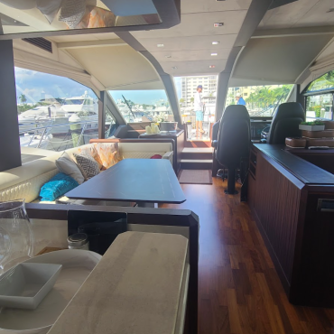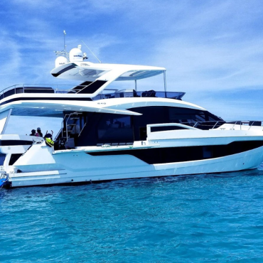 The Galeon 640 FLY (2022) is a stunning 64-foot motor yacht built for entertaining, relaxation, and adventure. Ideal for large groups, this yacht offers multiple outdoor lounge areas, including a spacious flybridge with a hardtop sunshade, bar, and ample sunbathing space—the ultimate hangout spot for unforgettable days on the water.