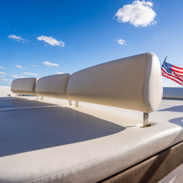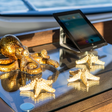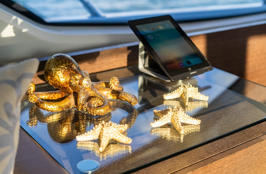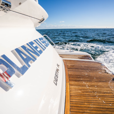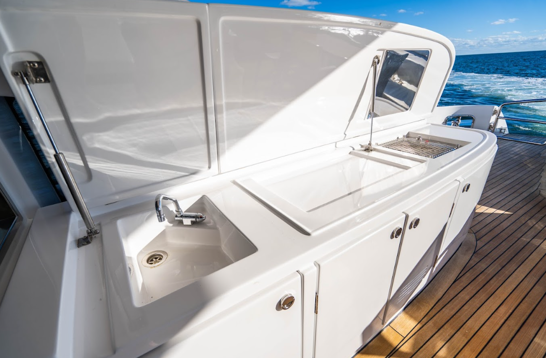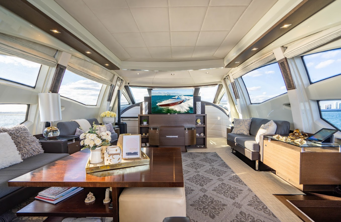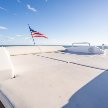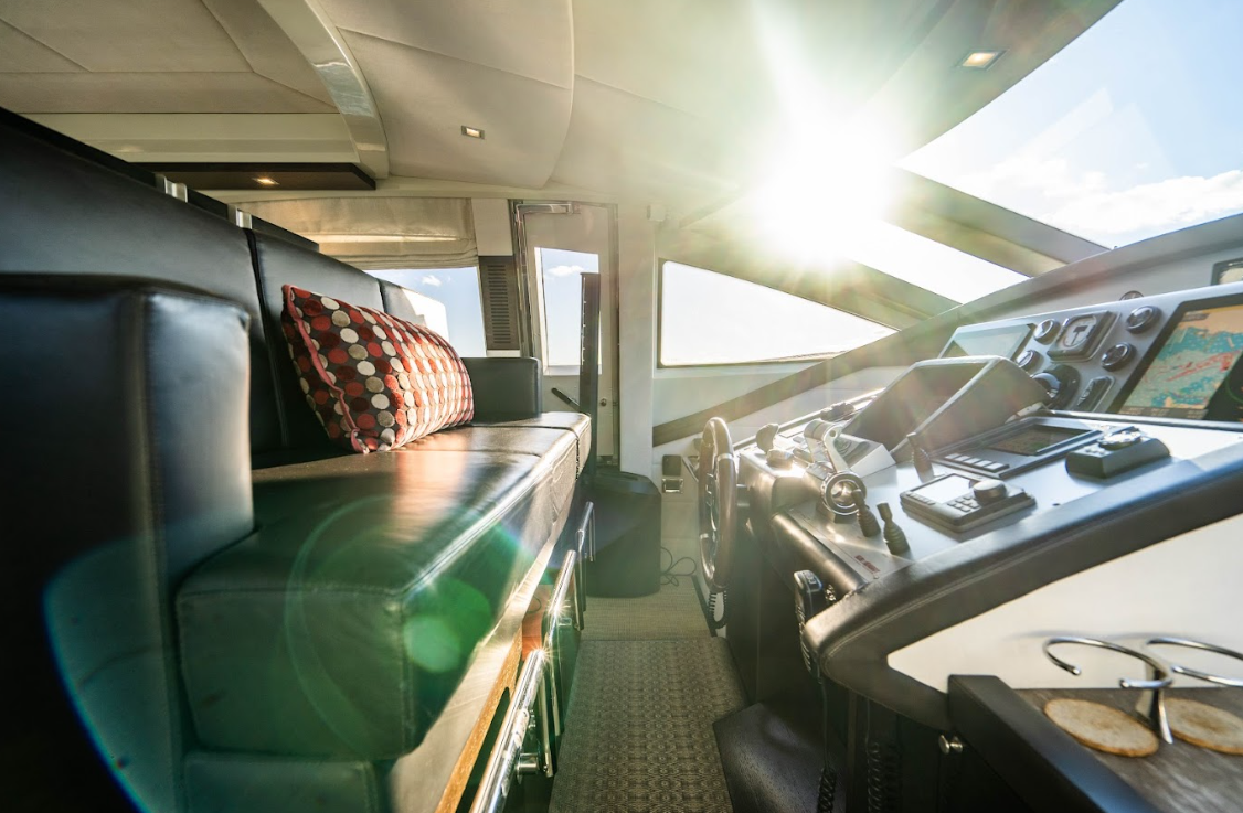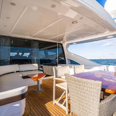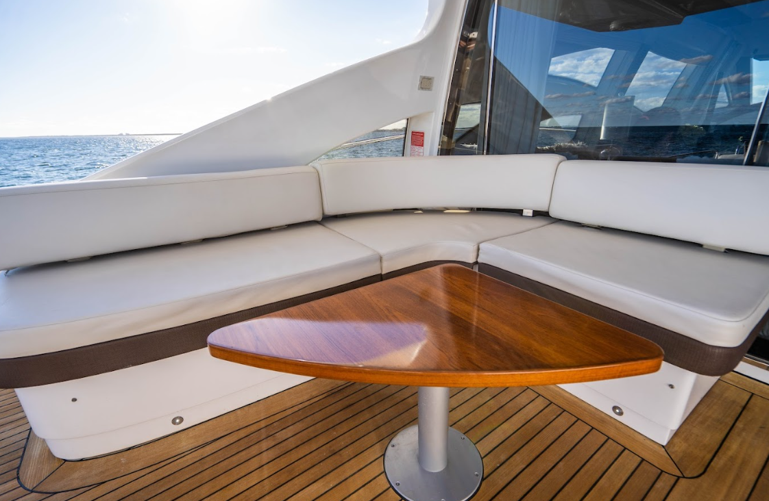 With an aggressive, unmistakable profile, the yacht is instantly recognizable by its sporty hull and six central square windows — a signature design element of the Open line. The superstructure features distinctive shark-fin-shaped windows, with an additional elongated pane for enhanced visibility and a streamlined look.