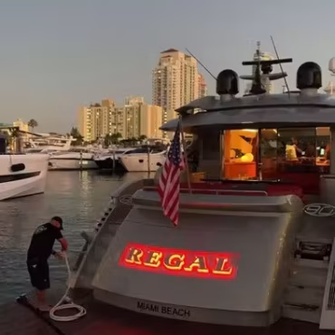The Regal boasts four elegantly appointed staterooms, each with a private en-suite bathroom, ensuring ultimate comfort for all guests. The main deck features a spacious salon with a wet bar, a dining area for eight, and a large sundeck perfect for soaking up the Miami sun. On the lower deck, you’ll find the four staterooms designed to provide a serene retreat.