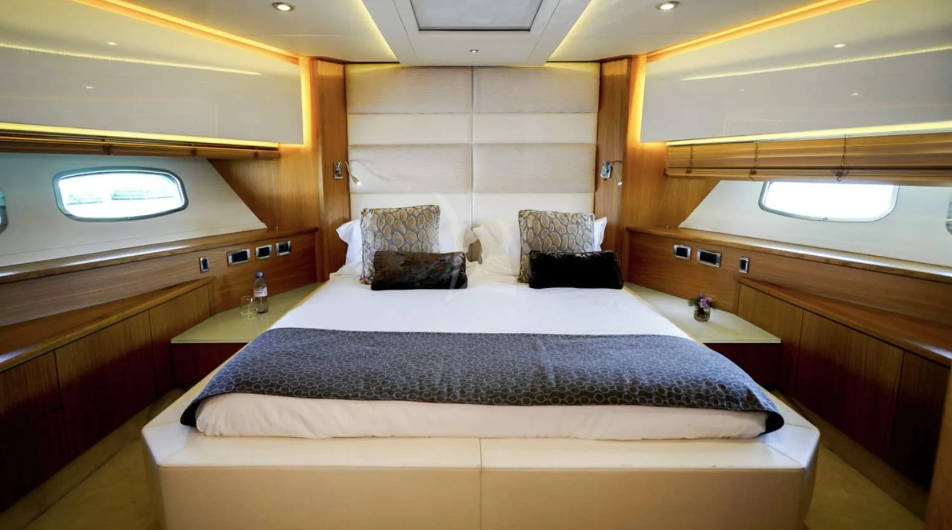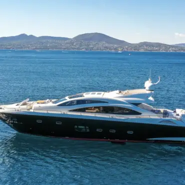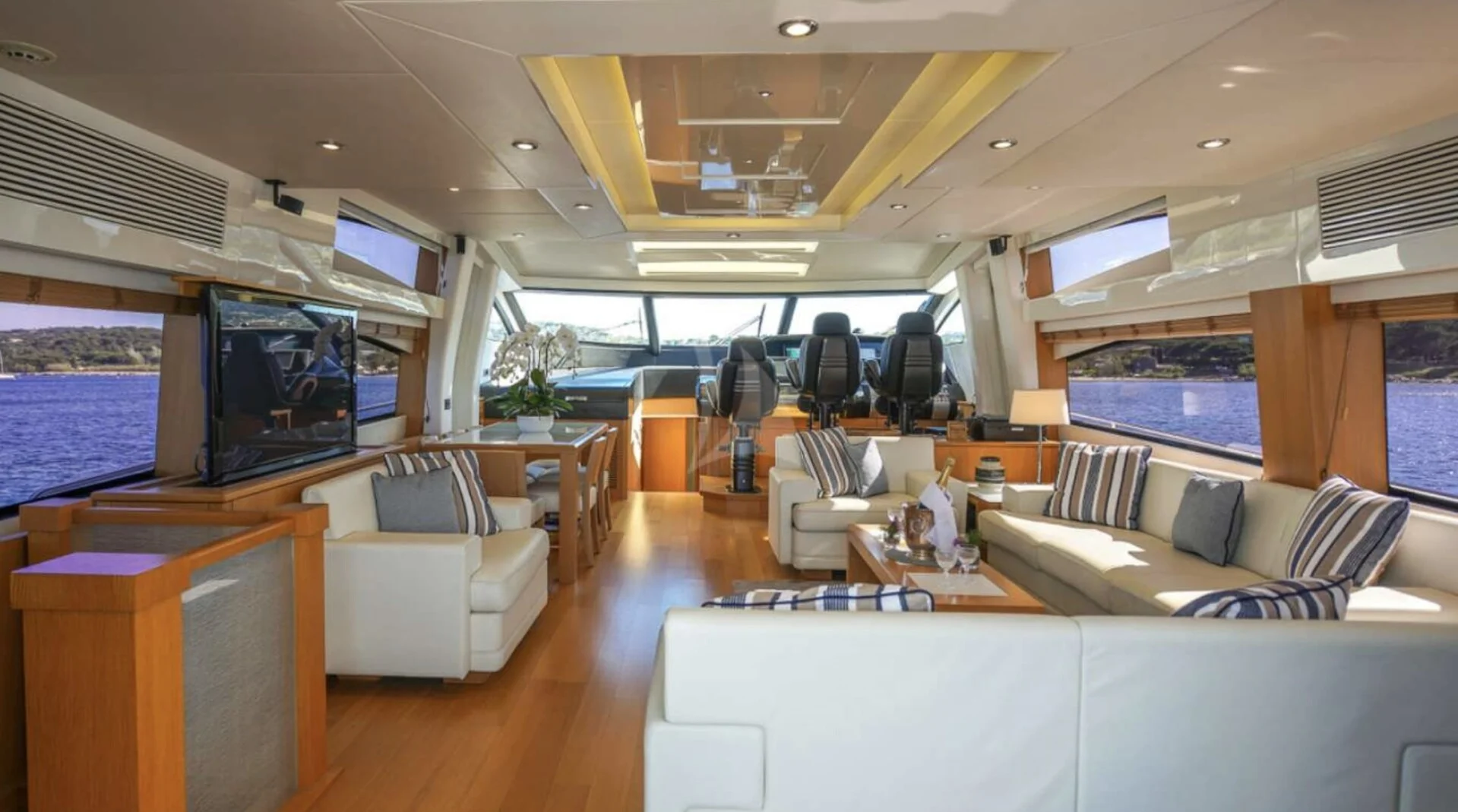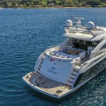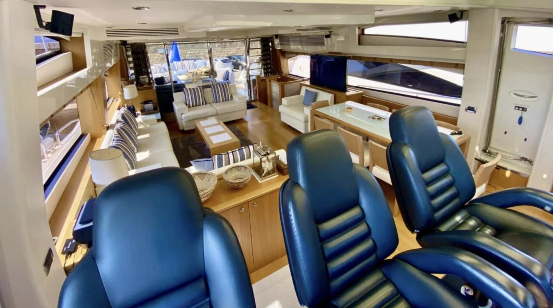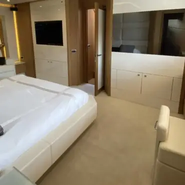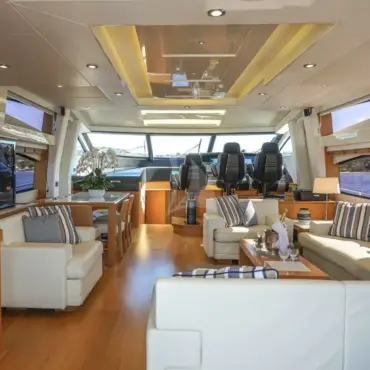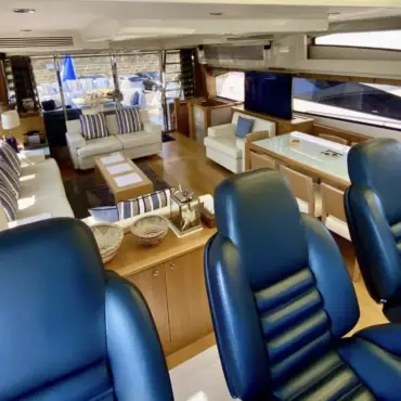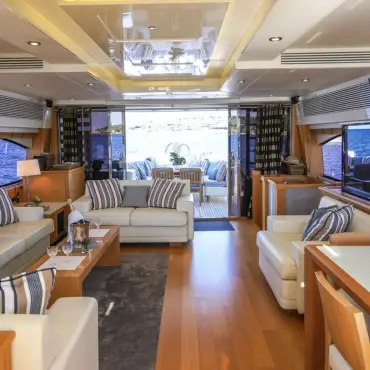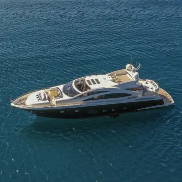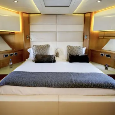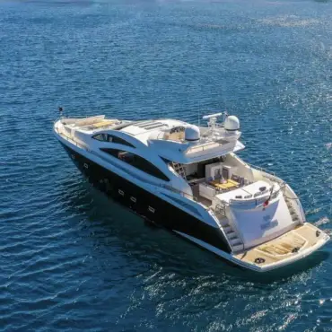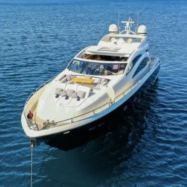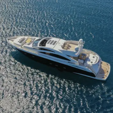 This opulent 86-foot yacht offers accommodation for 8 guests across 4 cabins, combining both speed and endurance. Whether you’re setting out on a short coastal cruise or a longer ocean voyage, guests will enjoy a range of luxurious features. The expansive flybridge includes a sleek hardtop for shade, a well-equipped bar, and plush seating—creating an ideal space for relaxation and casual conversation. Choose this stunning yacht for an unforgettable charter experience.