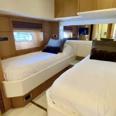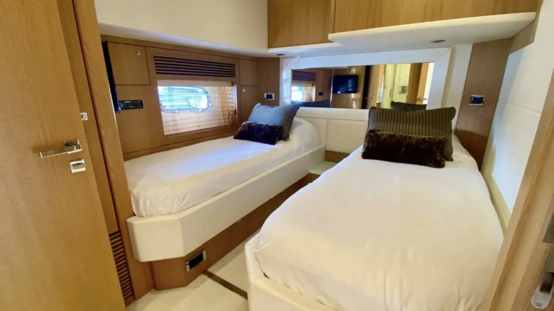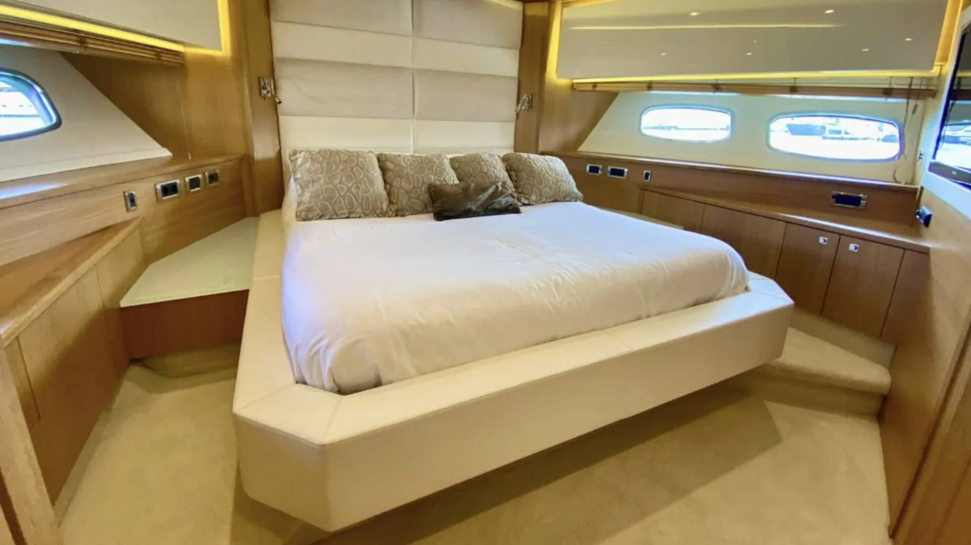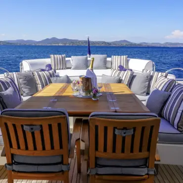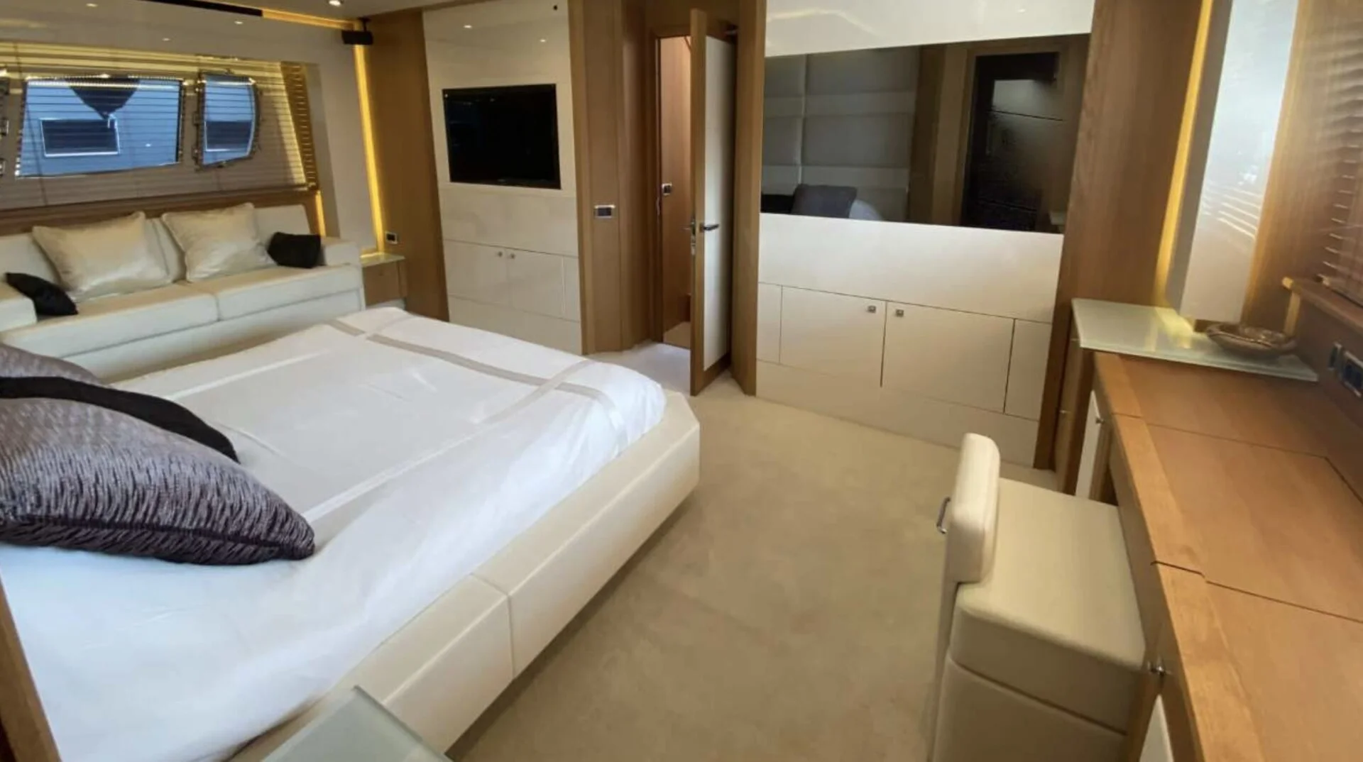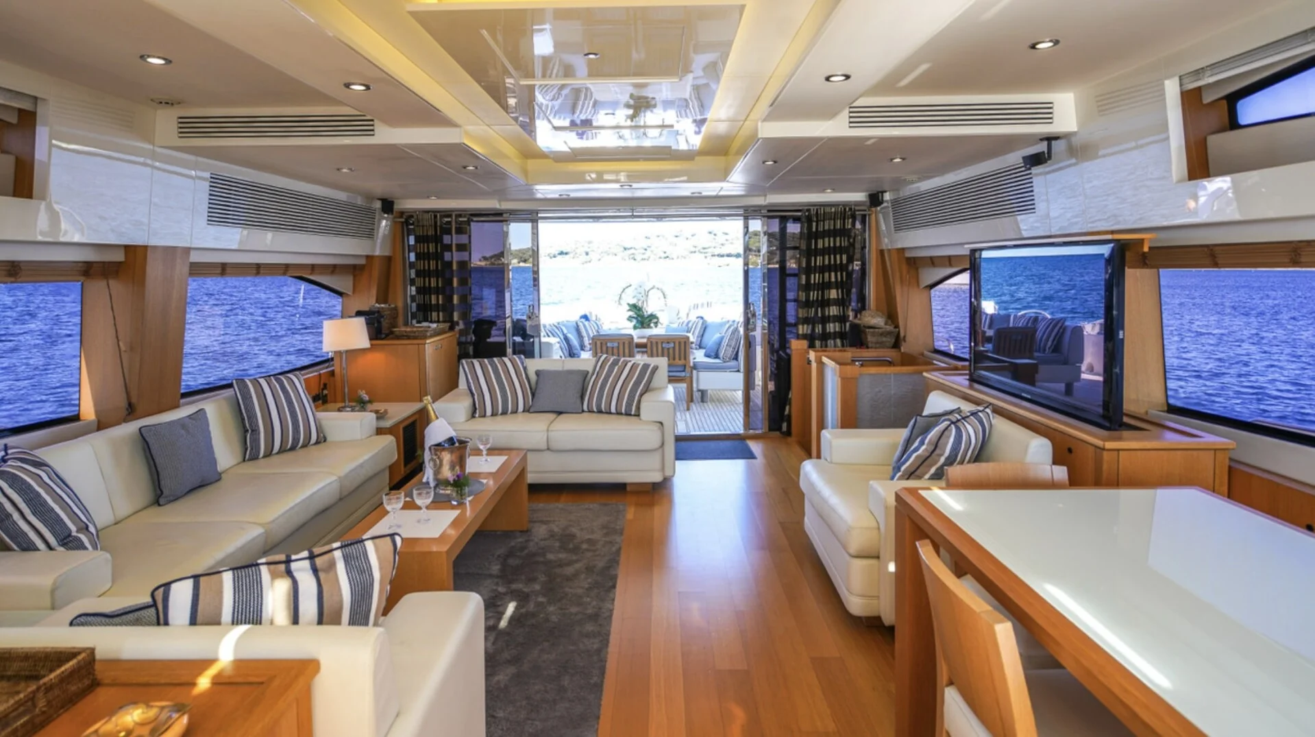 This opulent 86-foot yacht offers accommodation for 8 guests across 4 cabins, combining both speed and endurance. Whether you’re setting out on a short coastal cruise or a longer ocean voyage, guests will enjoy a range of luxurious features. The expansive flybridge includes a sleek hardtop for shade, a well-equipped bar, and plush seating—creating an ideal space for relaxation and casual conversation. Choose this stunning yacht for an unforgettable charter experience.