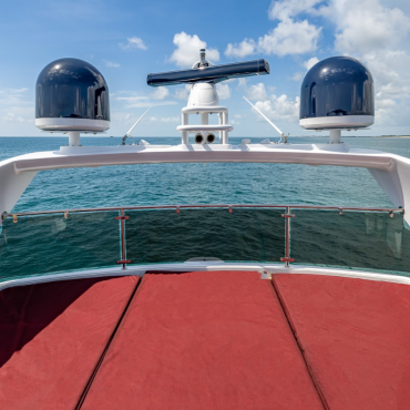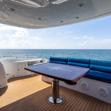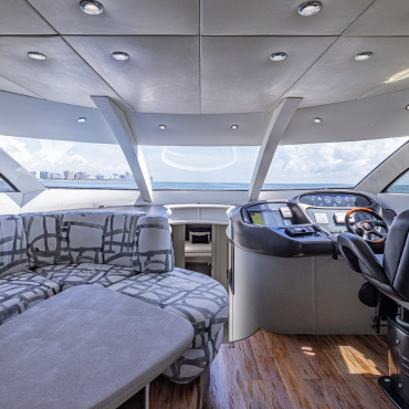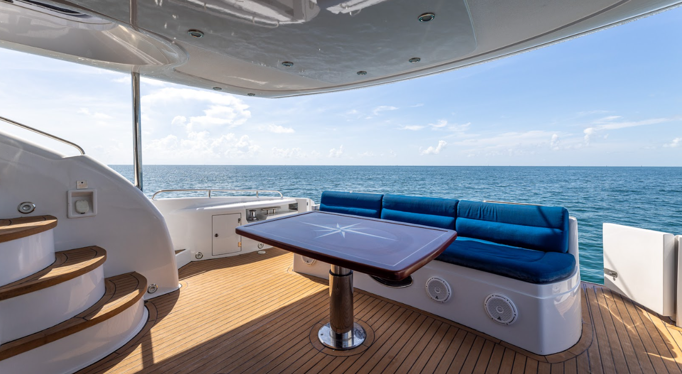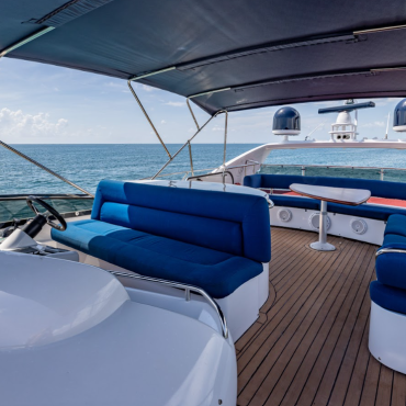 Spacious Flybridge with loungers, sunbeds, a wet bar, and panoramic views