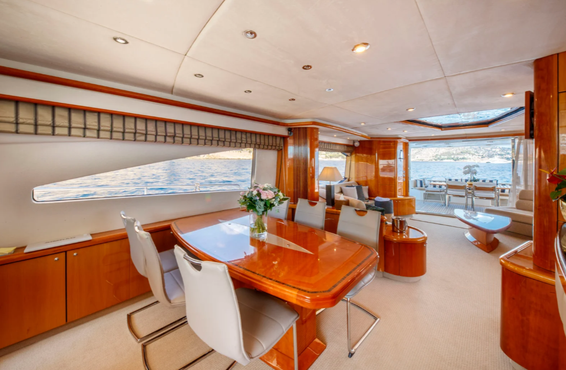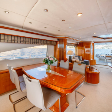 This 82-foot yacht embodies a seamless fusion of elegance and performance, featuring a lavish cherrywood interior paired with a sporty, modern flair. Designed to accommodate up to eight guests in four meticulously appointed cabins, it is an ideal choice for extended family getaways or larger groups seeking a refined and stylish cruising experience.