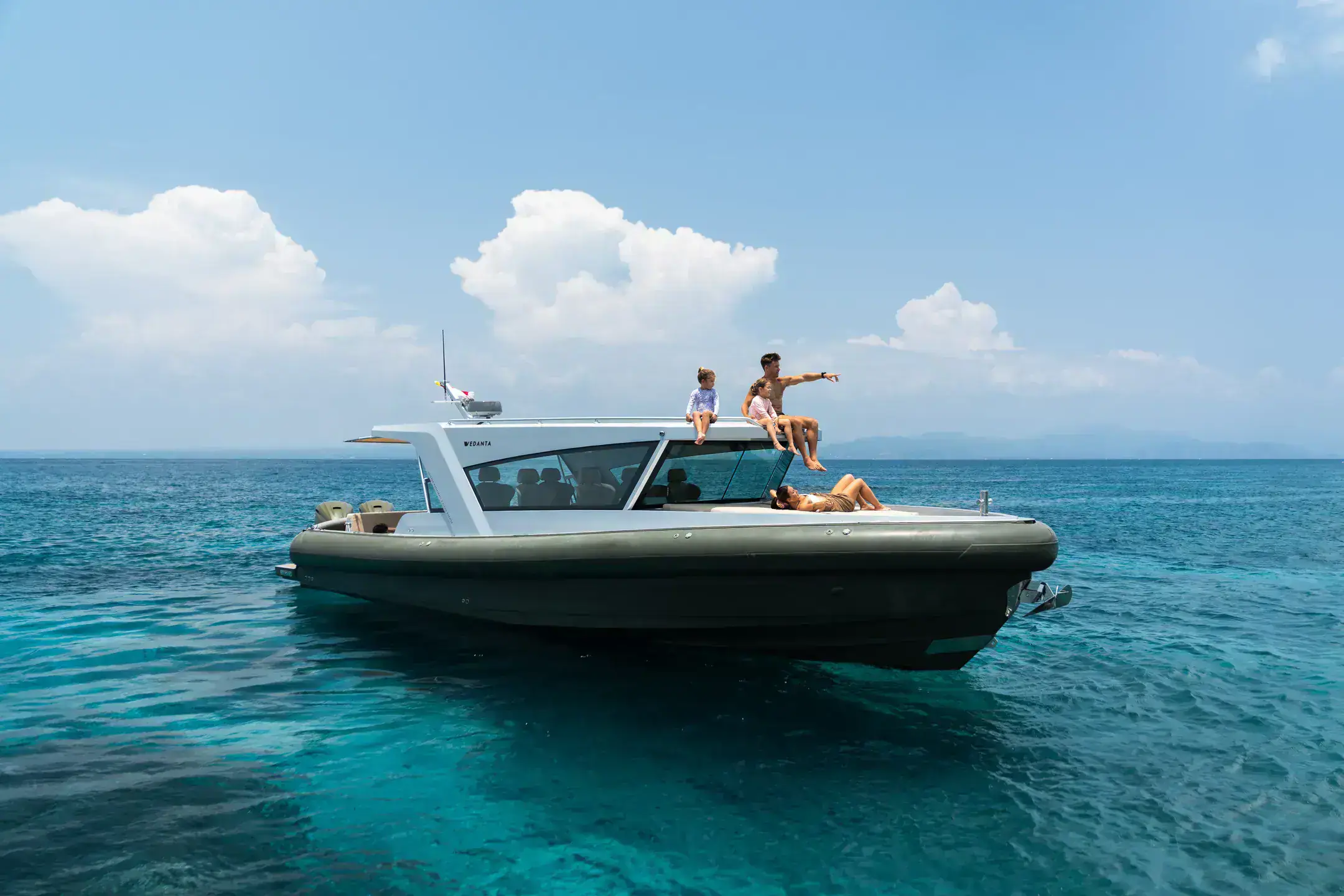 Relax in refined surroundings as you glide across open waters in total comfort and style.