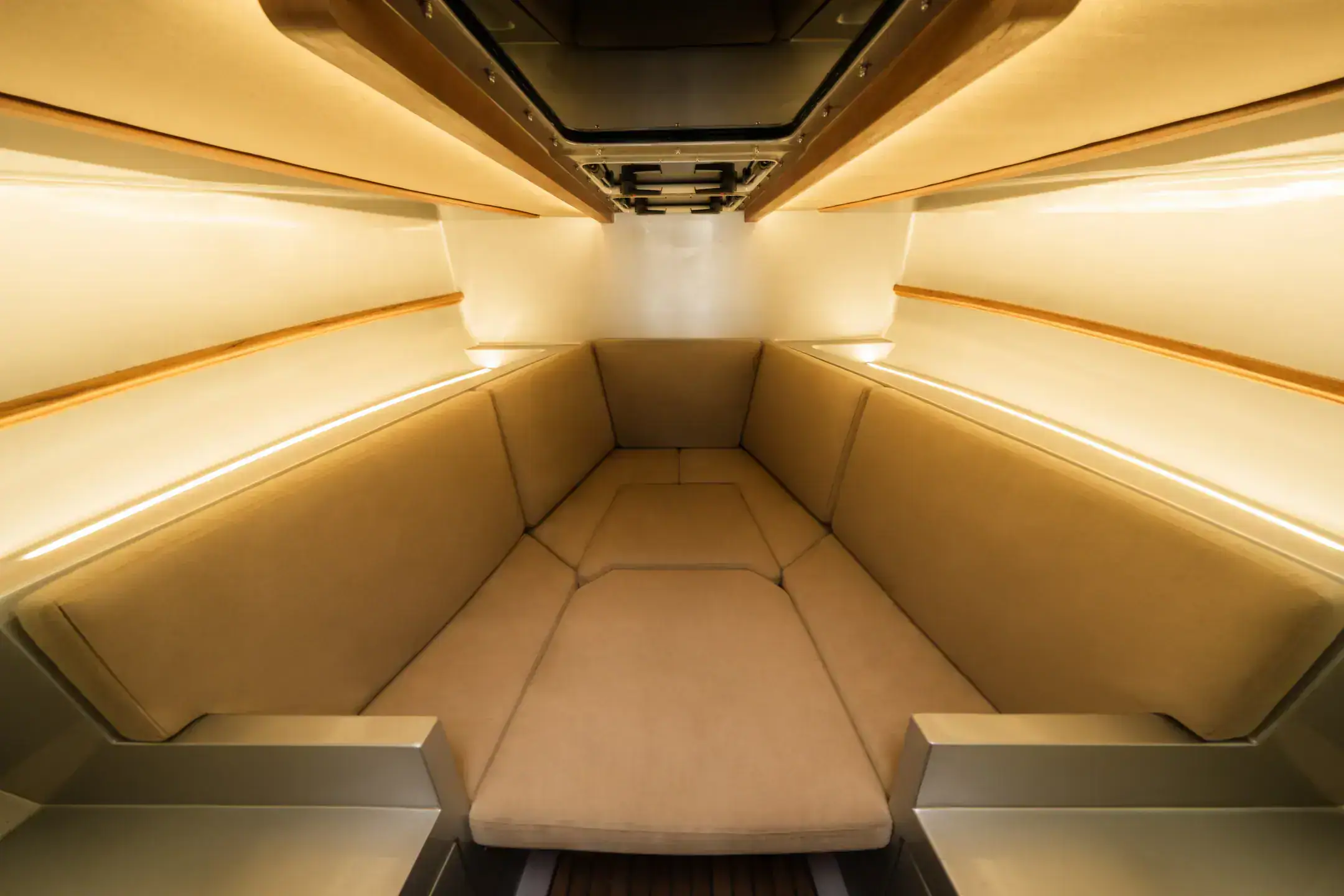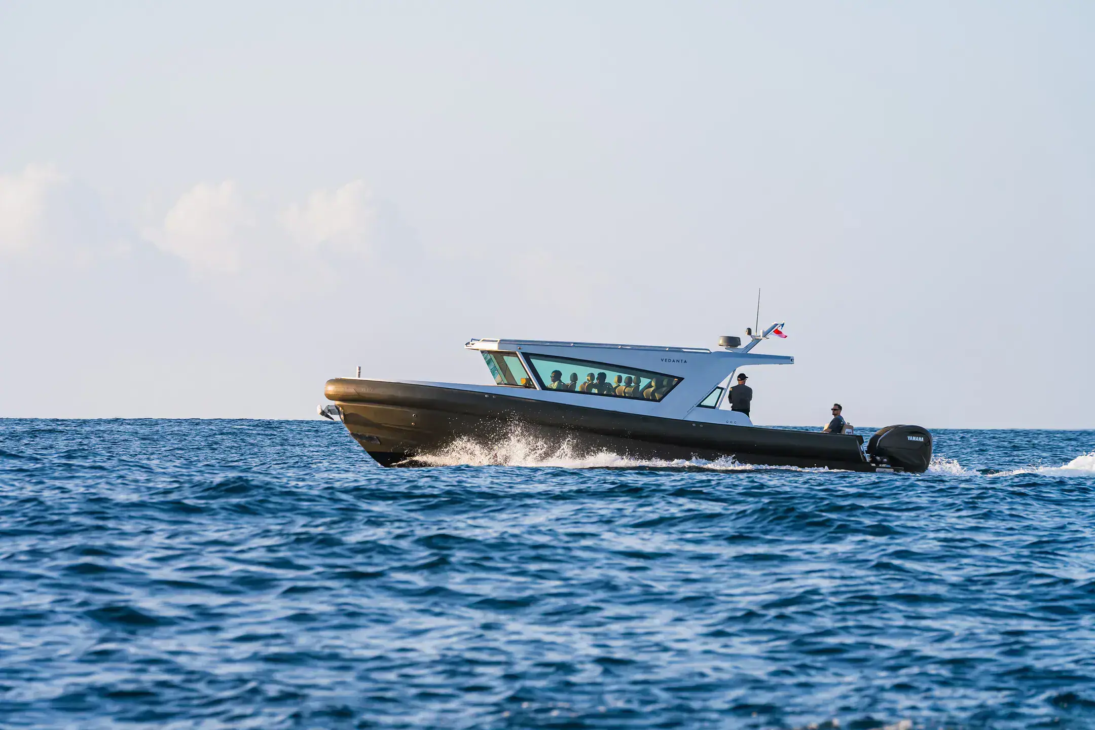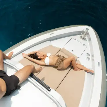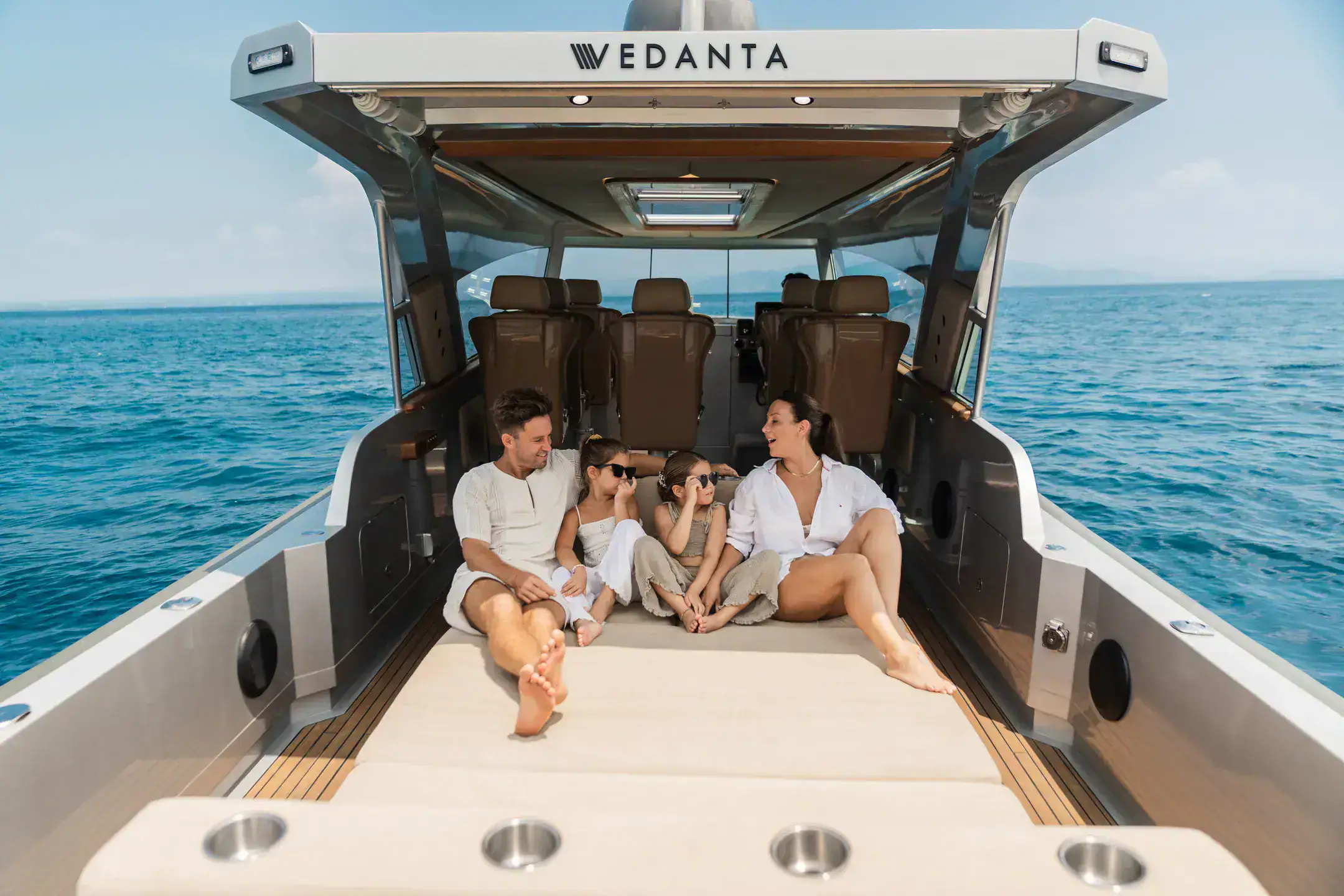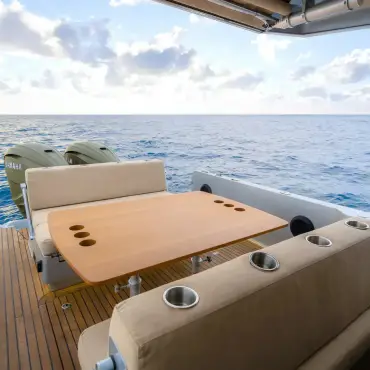 Relax in refined surroundings as you glide across open waters in total comfort and style.