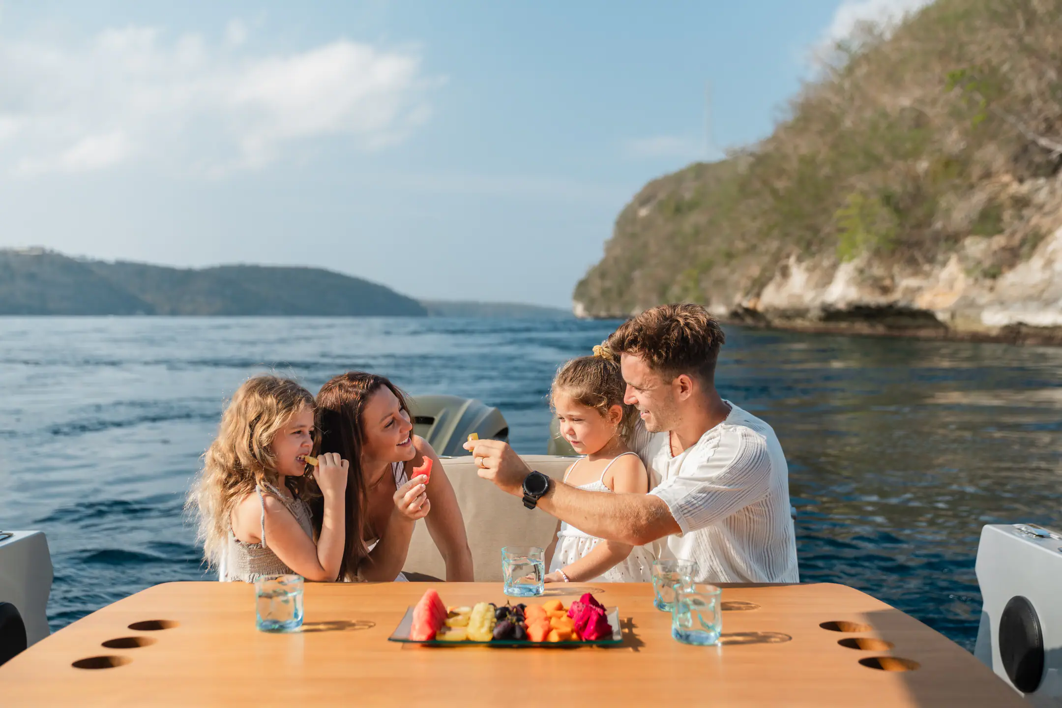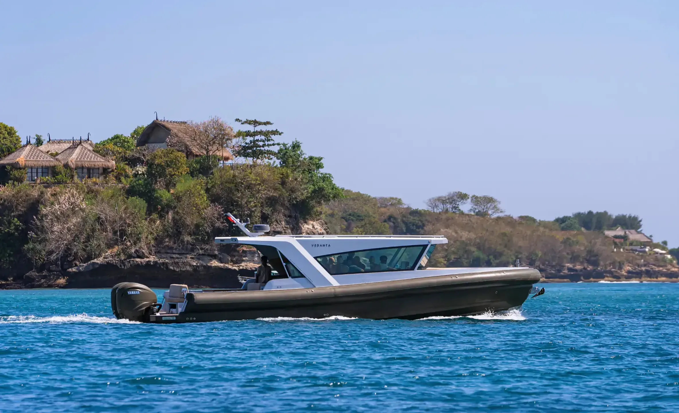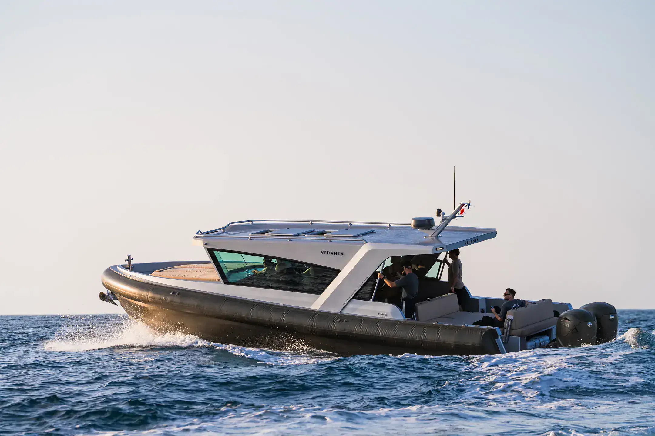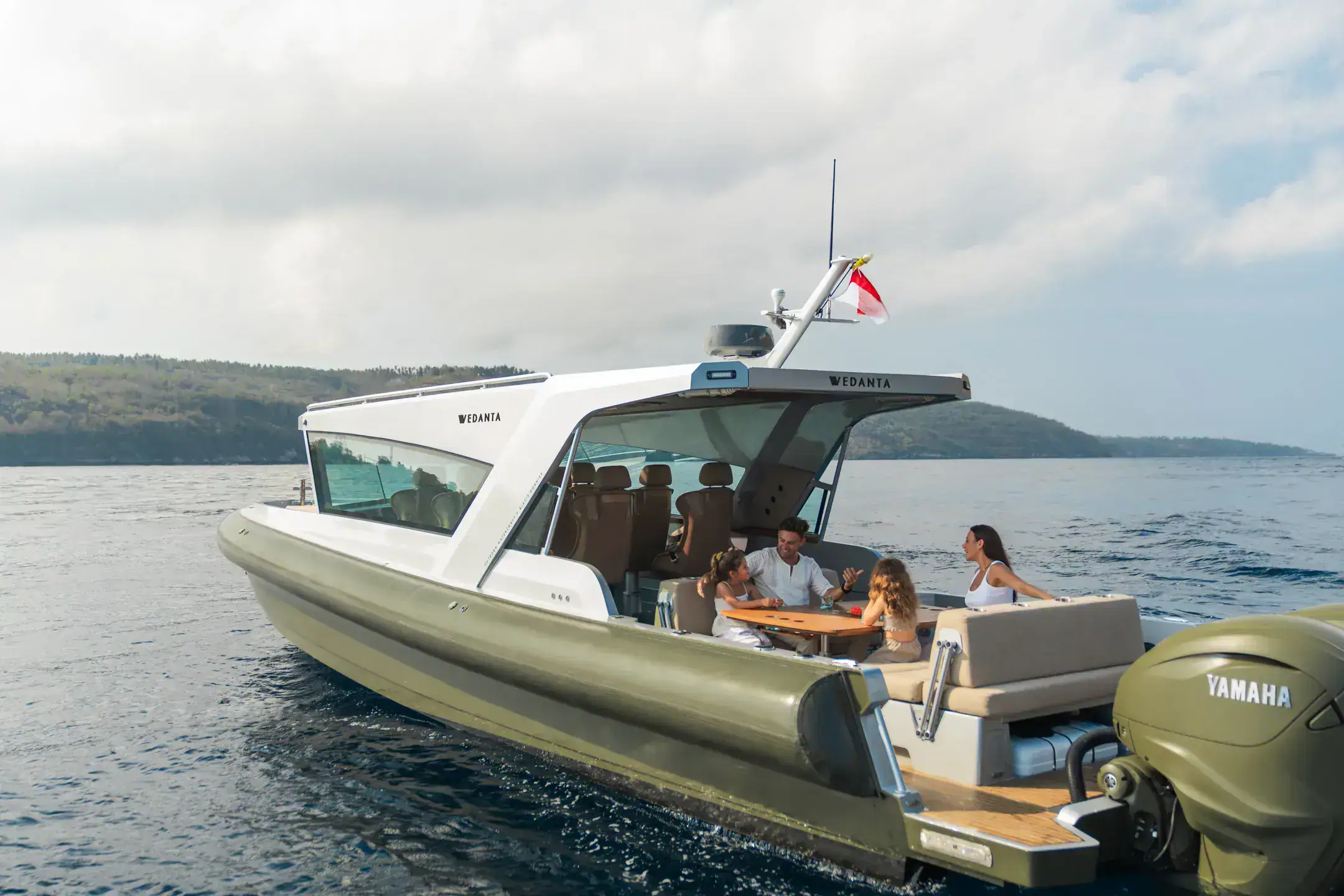 Relax in refined surroundings as you glide across open waters in total comfort and style.
