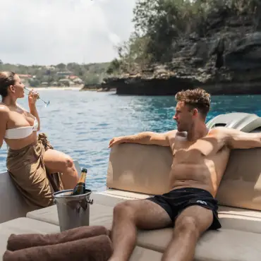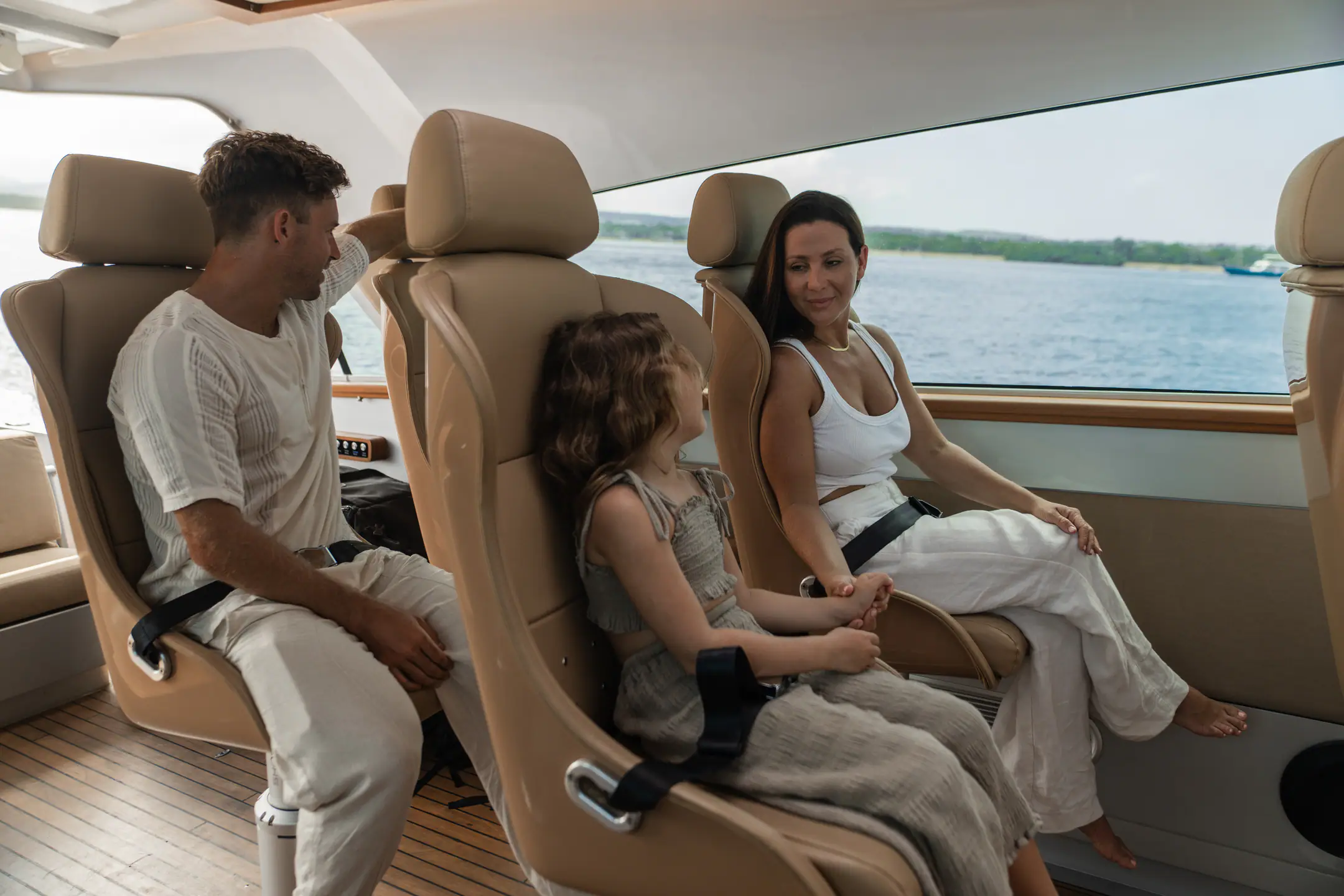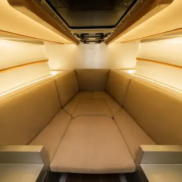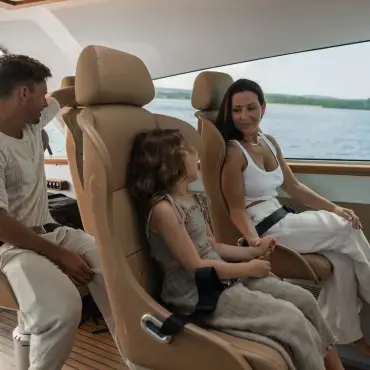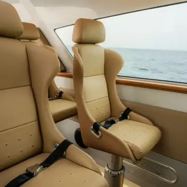 Step into a space where luxury meets relaxation. The air-conditioned cabin is designed for serenity, whether you’re on a private boat charter or a premium transfer.
