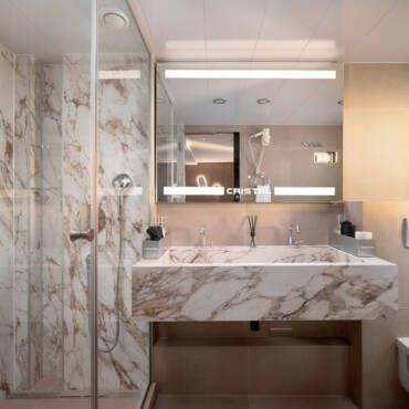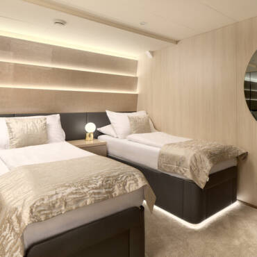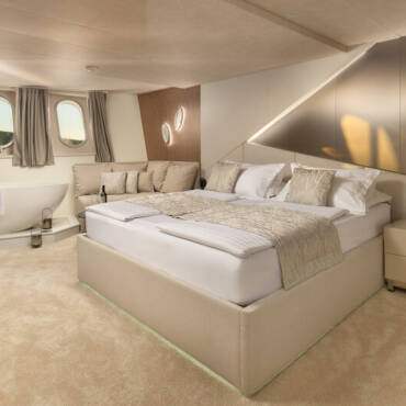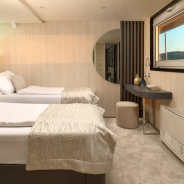 Main deck cabins feature large windows framing breathtaking views of Croatia’s passing islands, while lower deck cabins offer enhanced intimacy and spacious layouts ideal for deep relaxation.