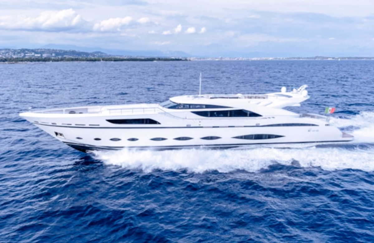 Specifications – Year Built: 2016 – Length: 44.60 m (146 ft) – Beam: 8.30 m (27′ 3″) – Draft: 1.30 m (4′ 3″) – Gross Tonnage: 338 GT – Guests: 10 – Crew: 7 – Cabins: 5 (1 Master, 3 VIP Doubles, 1 Twin, 1 Convertible/Gym) – Cruising Speed: 37 knots – Max Speed: 43 knots – Range: 750 NM – Fuel Capacity: 23,500 L – Fresh Water: 5,600 L