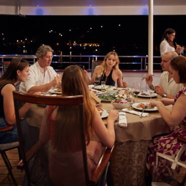 Guests can enjoy traditional Croatian specialties such as kotlovina — a variety of meats slow-cooked over an open fire on the sundeck, prepared fresh before your eyes.