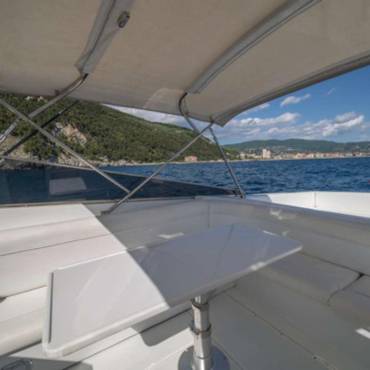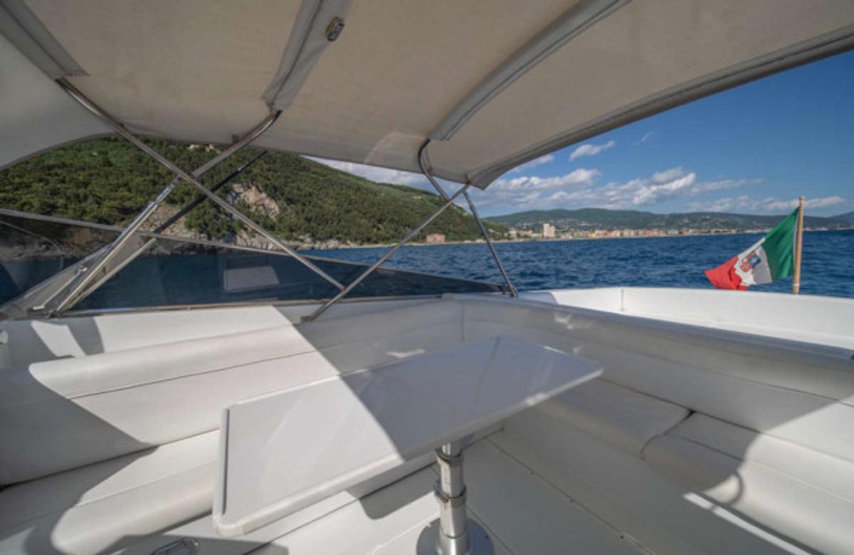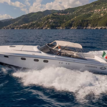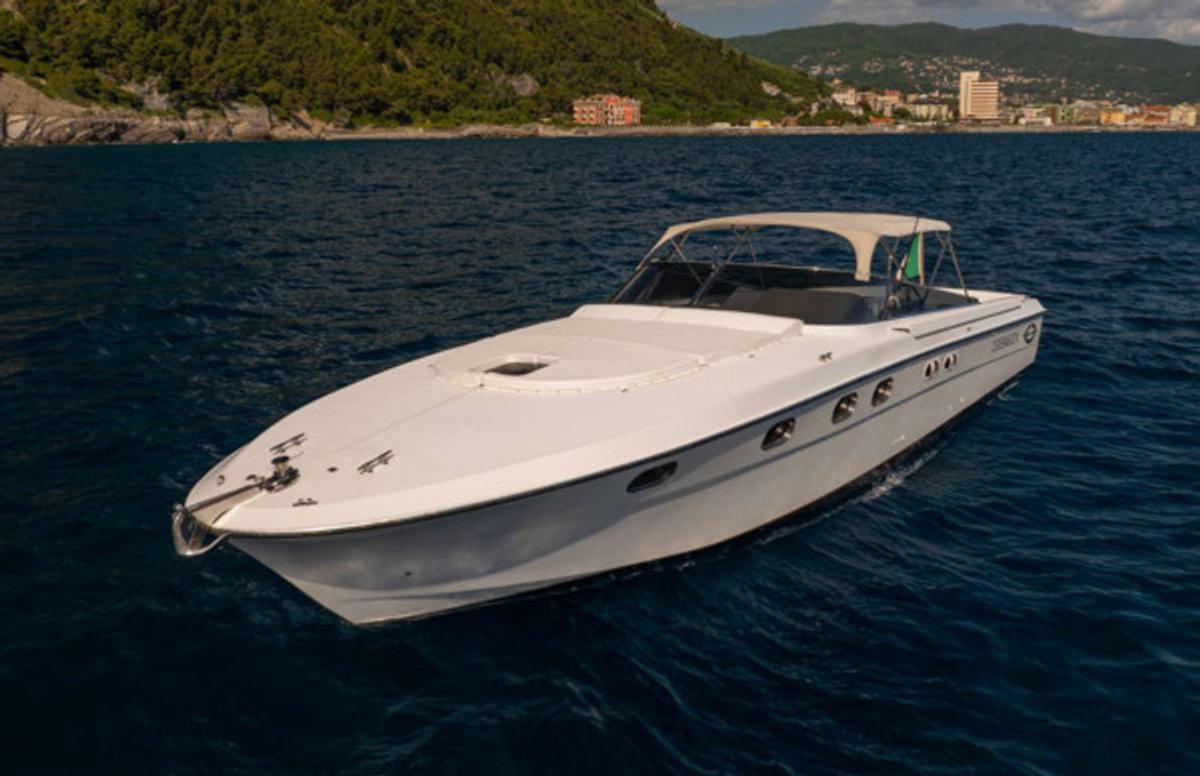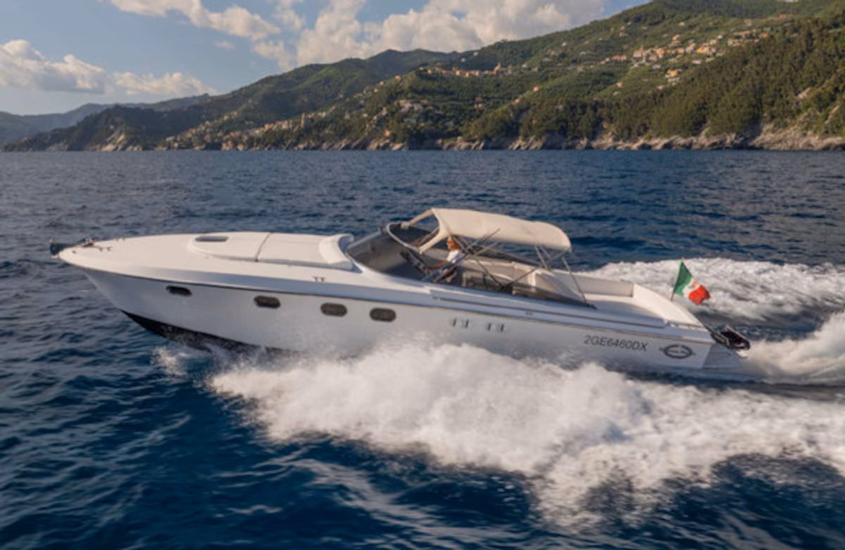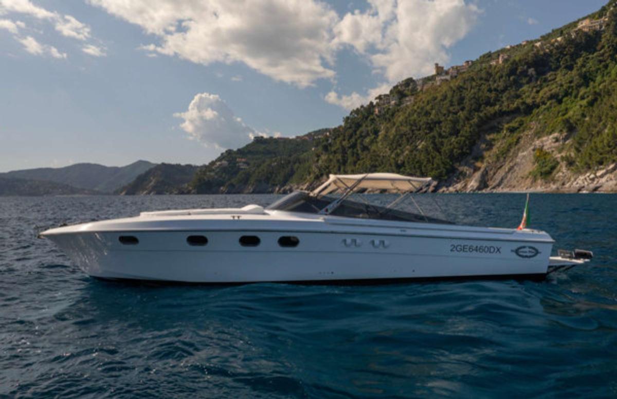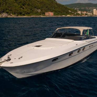 General Specifications – Builder: Magnum Marine – Model: 40’ Sport – Length Overall (LOA): 12.24 meters (40 ft) – Engines: 2 x 435 HP CAT – Type: Motor yacht – Max Speed: 30 knots – Cruising Speed: 22 knots – Guests: 12 + 1 crew – Base Port: Chiavari Harbour