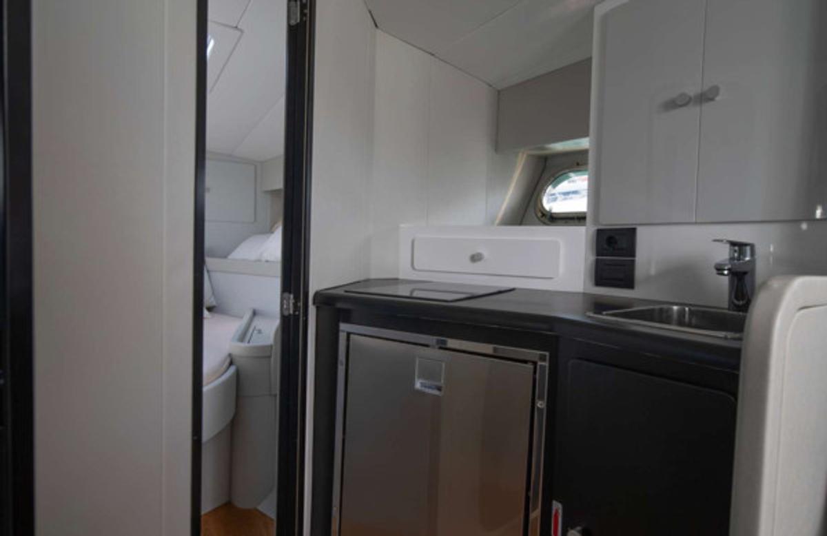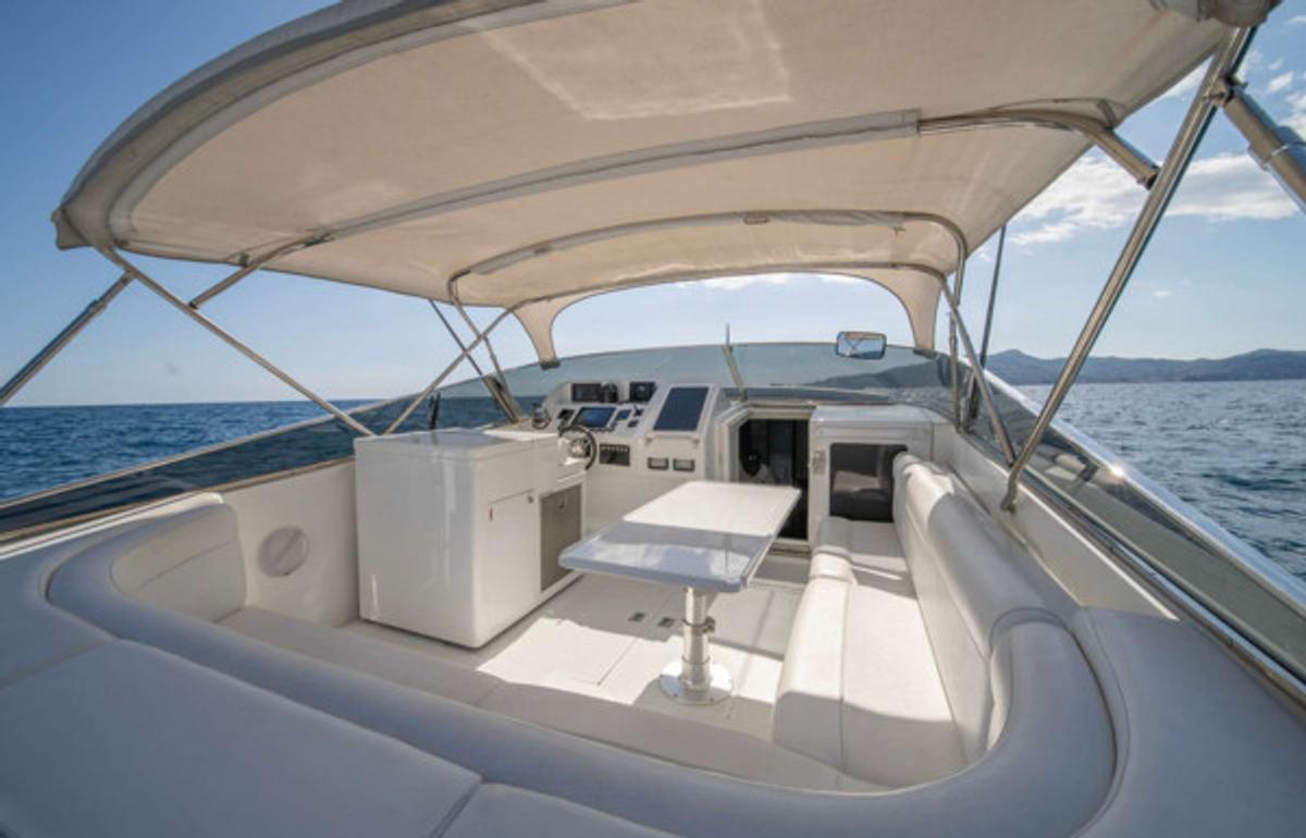 Outside – Sunshade – Bow & stern sundecks – Fridge – Bluetooth stereo – Swimming ladder – Fresh water shower – Table & sofa for lounging