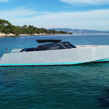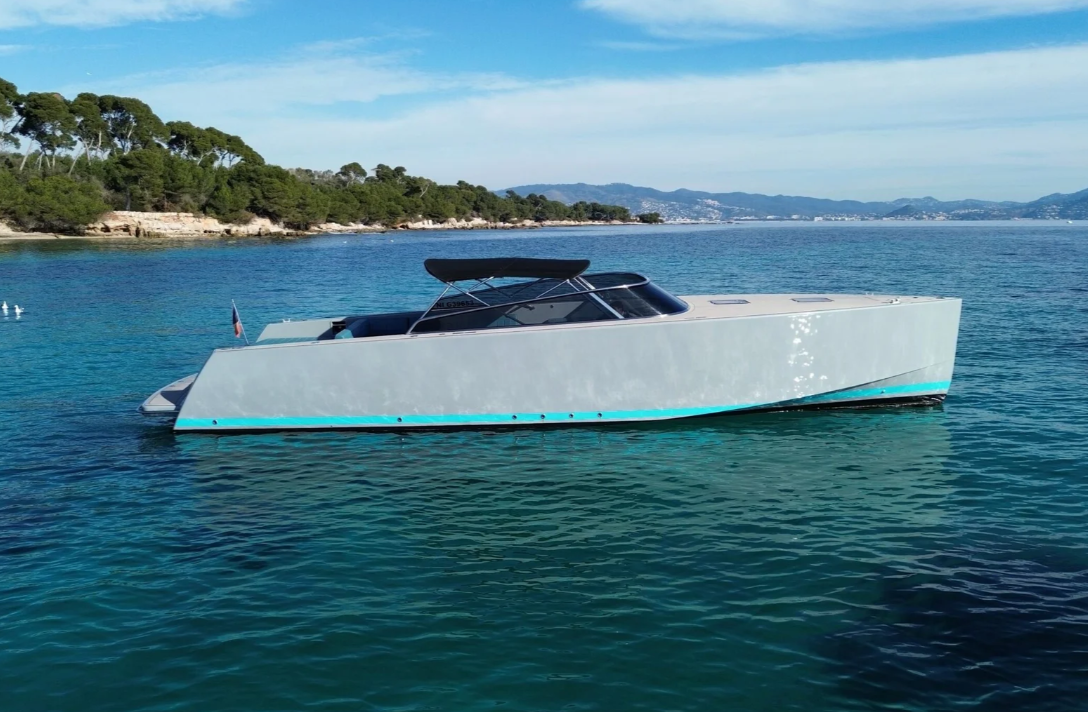 Available for charter along the French Riviera, the VanDutch 40 departs from ports including Saint-Tropez, Ramatuelle, Sainte-Maxime, Port-Grimaud, Marines de Cogolin, Cannes, Monaco, Antibes, Nice, and Saint-Jean-Cap-Ferrat.