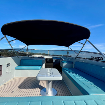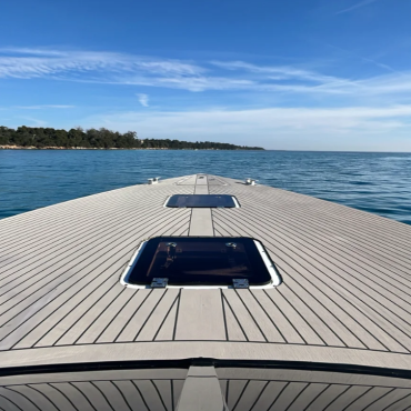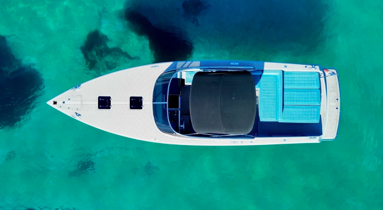 With exceptional seakeeping capabilities and a high-performance hull, this yacht delivers a smooth, powerful ride across the Mediterranean. The spacious cockpit—shielded by a signature curved windscreen—offers unrivaled comfort and panoramic views. Inside, the modern, minimalist interior reflects the essence of sophistication, perfect for relaxing or entertaining in style.