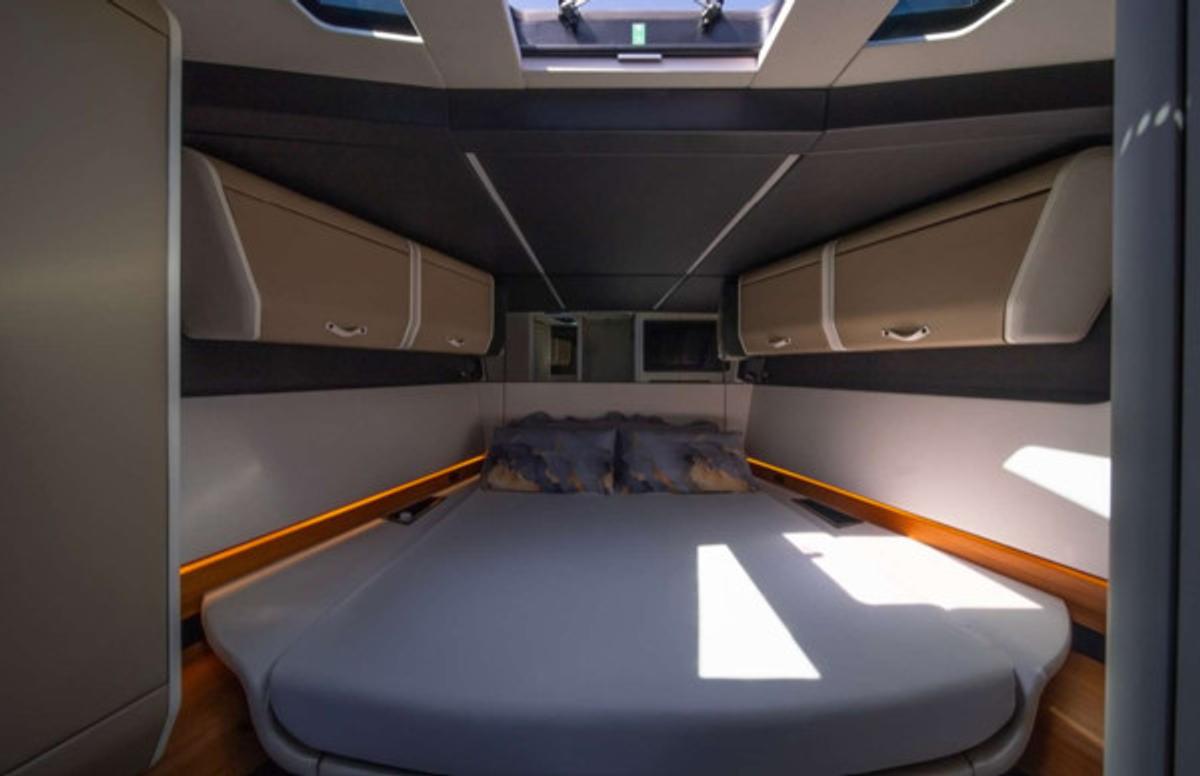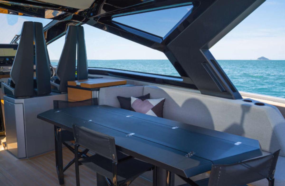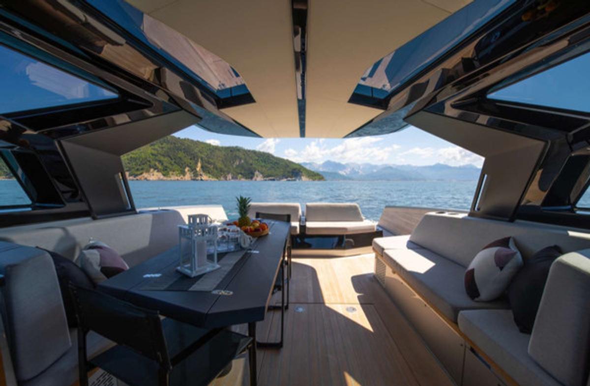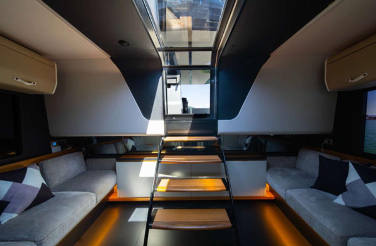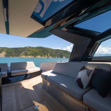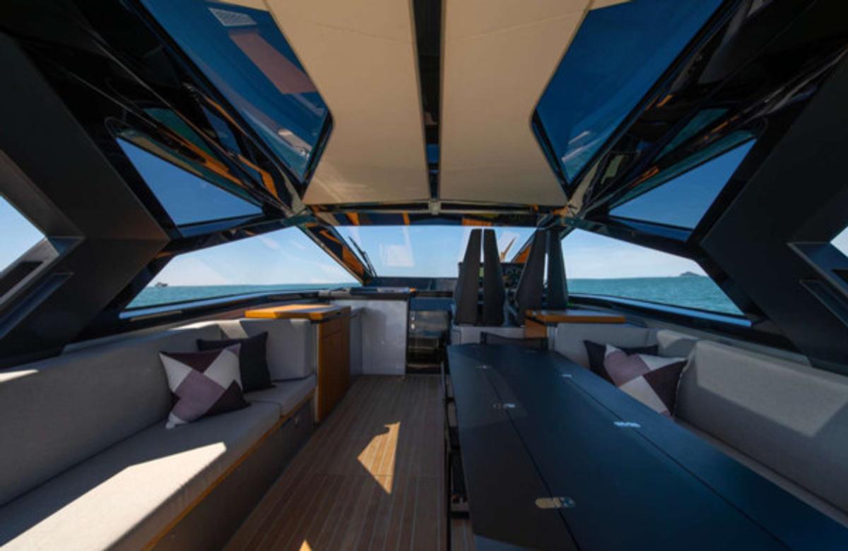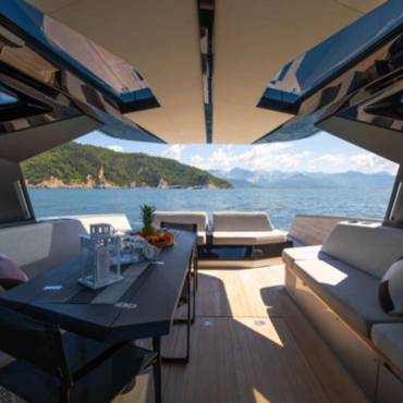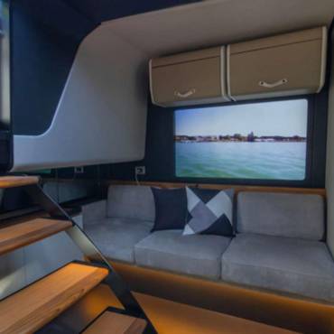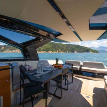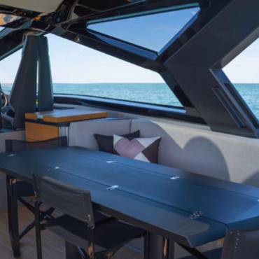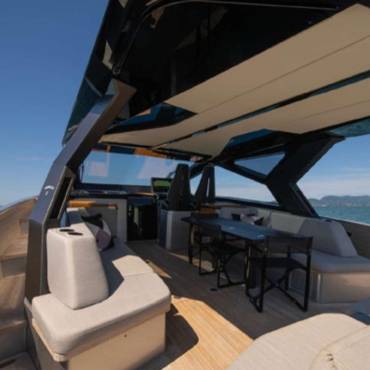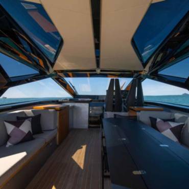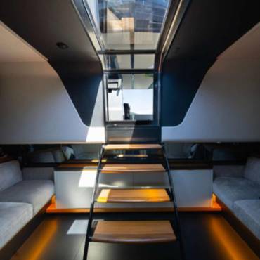 With a sleek, futuristic profile and signature glass and carbon dome, this yacht invites guests into a bright, spacious environment that blurs the line between interior and exterior living. Every aspect of the layout is crafted for both style and functionality—ideal for day cruising, entertaining, or anchoring at your favorite hidden cove.